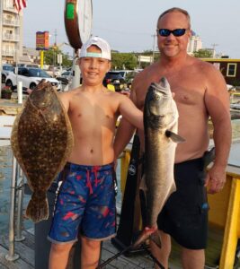 Rich Daiker and Reece Schindler had a great day with a 24″ flounder and a 9 pound bluefish at the route 50 bridge.