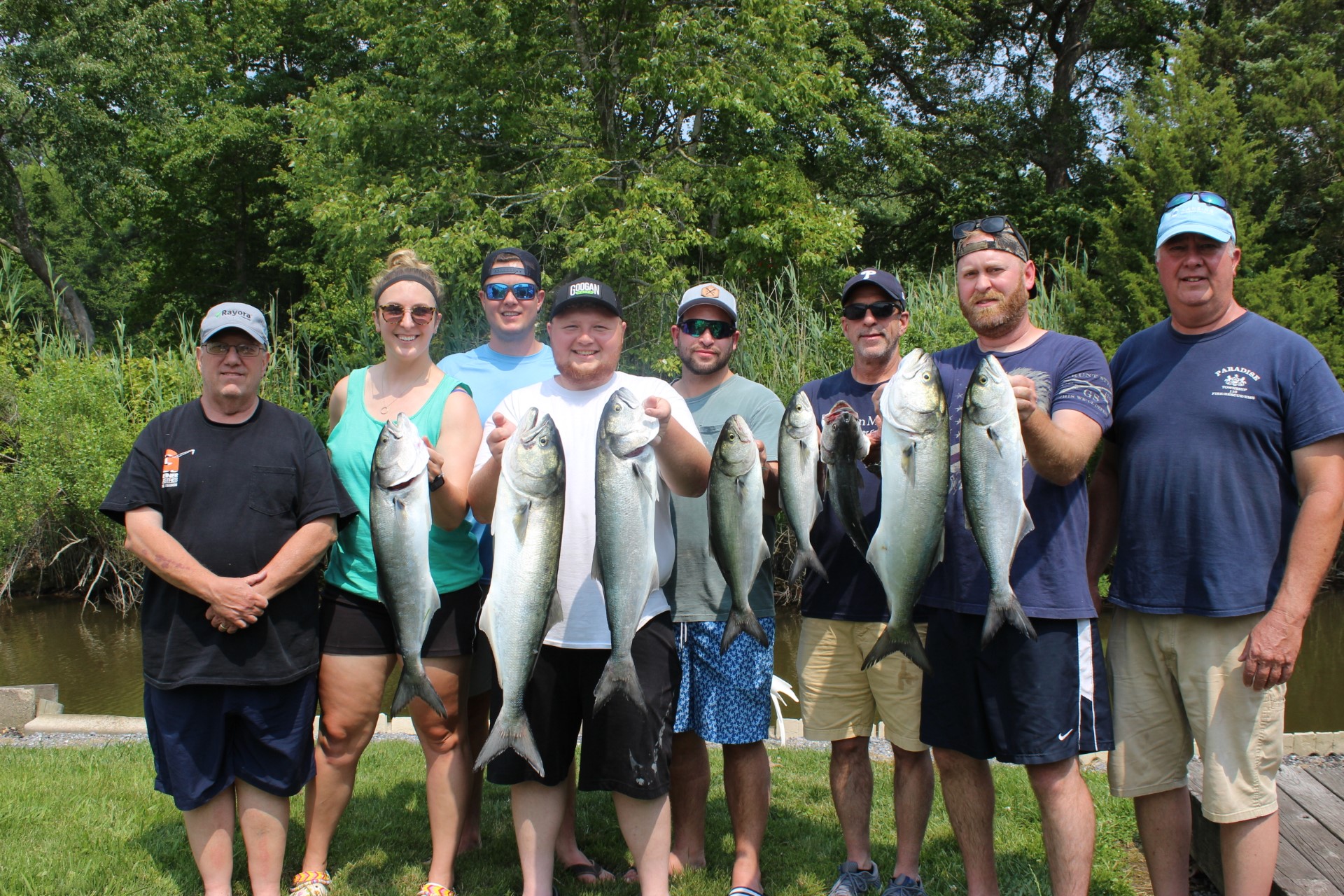 Brian Zeigler, Faith Rosenberg, Frank Biesecker, Jacob Zeigler, Grant Dohner, John Dohner, Josh Rosenberg and Lance Biesecker had a great day of fishing at the route 50 bridge landing 8 nice bluefish up to 10 pounds.