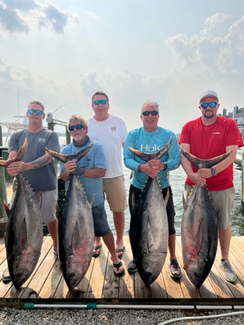 James Michael and his crew of Captain Bill, John Morton, John Walker and Chris Shields saw some good fishing with four 100 pound bigeye tuna from the Baltimore Canyon.