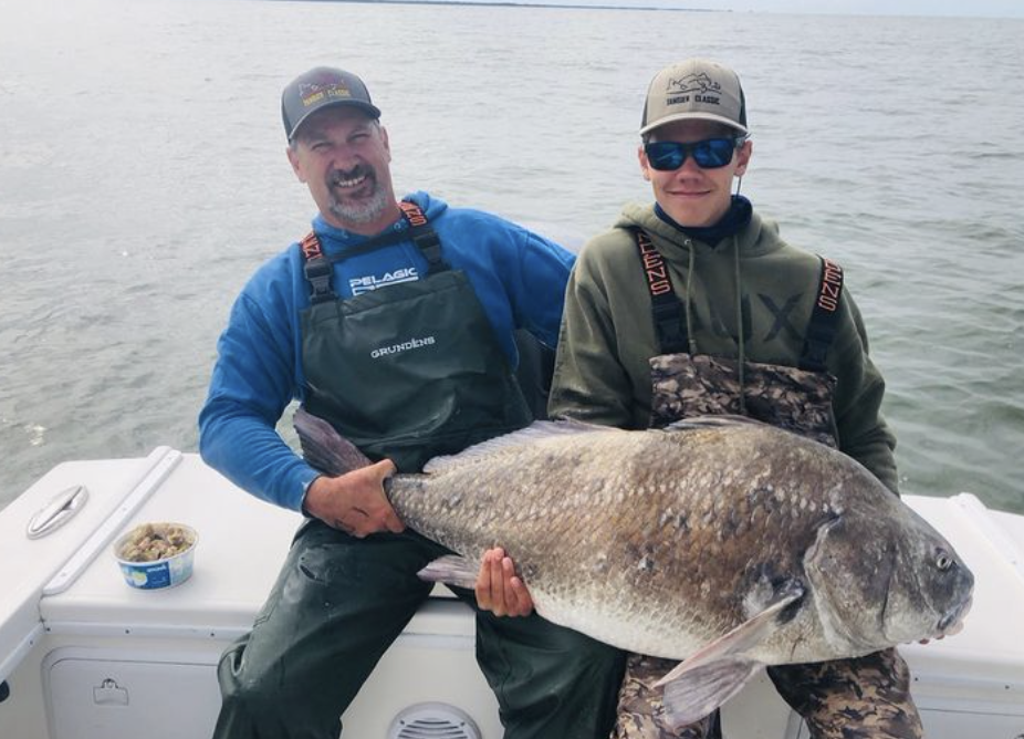 Tyler Patey was fishing the Chesapeake Bay using our Fish in OC / Deadly Tackle tog & bottom jigs when he caught this huge 44.5″ black drum! They’re not just for tautog anymore!