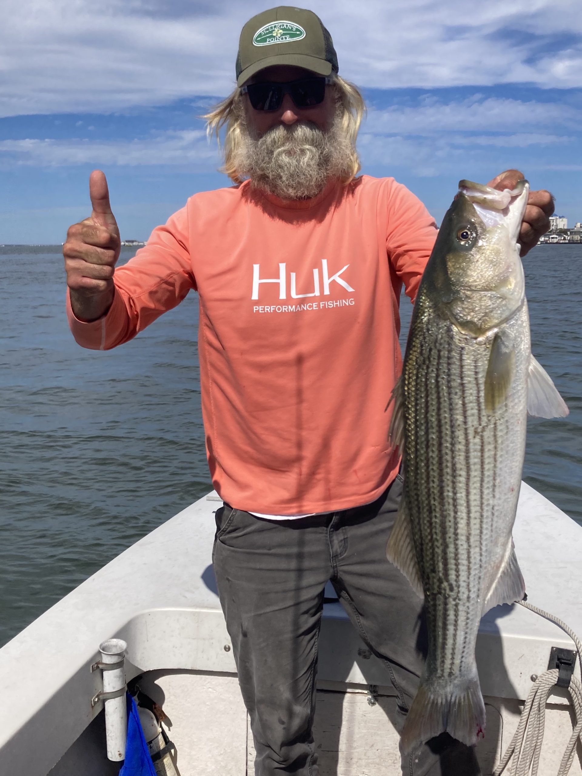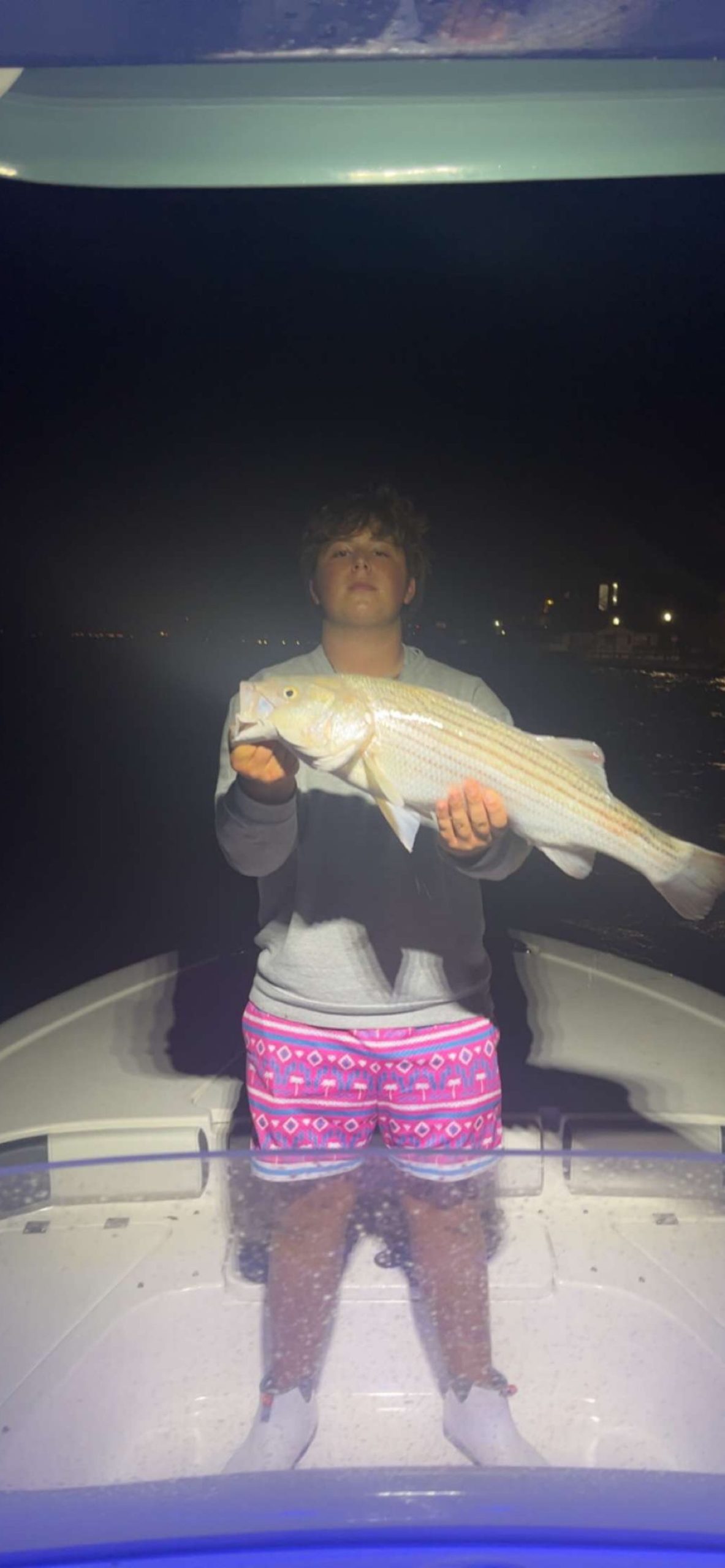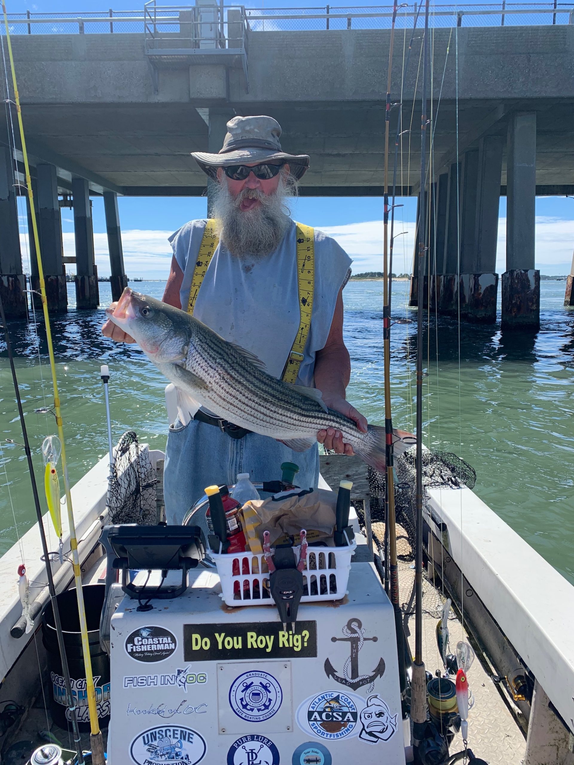 Owen West fished the route 50 bridge and caught this 31″, 9 pound keeper rockfish.