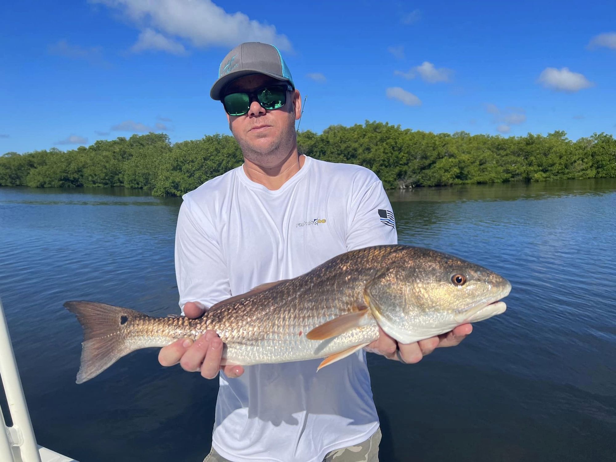 Justin Staats was fishing in Captiva, FL when he says our Fish in OC Bend a Rod. Back the Blue. shirt gave him some luck. He caught snook and big red drum in the shallows.