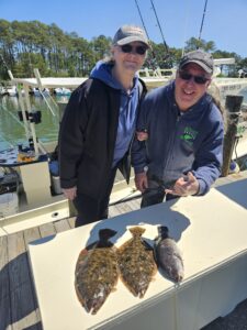 The striped bass migration is in full swing right now and we are seeing some very nice fish in the Assateauge surf and in the Ocean City Inlet. Captain Jason Mumford of Lucky Break Charters put his mornin group on some big fish releases in the inlet and then treated them to some meat for the cooler with flounder and tautog. This afternoon saw some of the same with some nice bluefish, flounder and tautog going in the box.