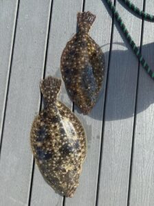 Mike Rintz caught some throwback flounder and a couple of keepers up to 21.5″ on Deadly Doubles baited with Gulp.