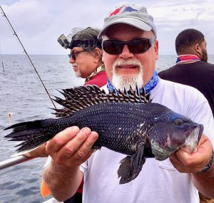 Sea bass fishing was good on board the Angler with Captain Chris Mizurak today. Captain Chris reported that they dropped the anchor and never budged thanks to a steady bite of sea bass all day.