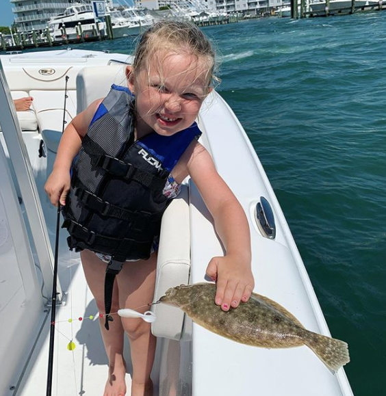 This little cutie came by way of @reefreeler on Instagram. She can handle the flounder no problem after catching one on the Fish in OC Deadly Double in chartreuse baited with a white Gulp.