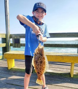 This young man caught his first ever flounder while fishing from the Oceanic Pier in downtown Ocean City.’