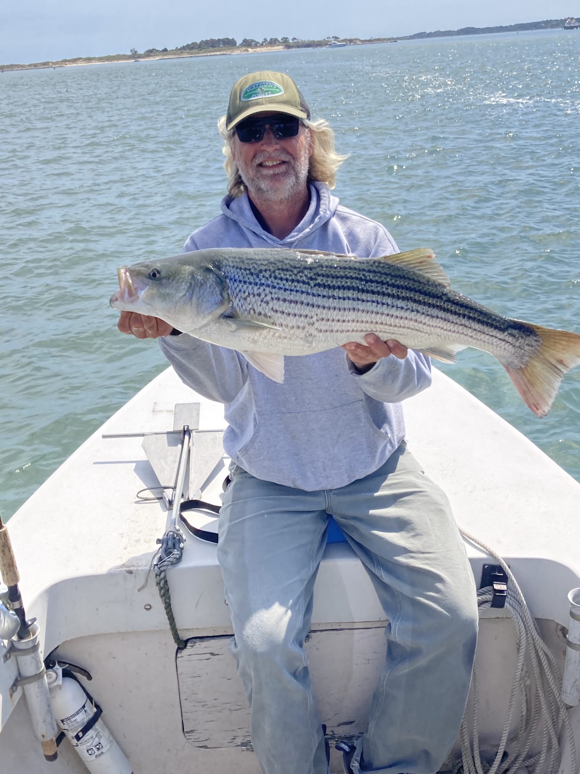Today wasn’t the nicest day we’ve had recently, but it wasn’t the worst either. There was a pretty good breeze out of the northeast for most of the day and even though that made the ocean a little rough, the bay wasn’t too bad and there were some fish caught in both places.