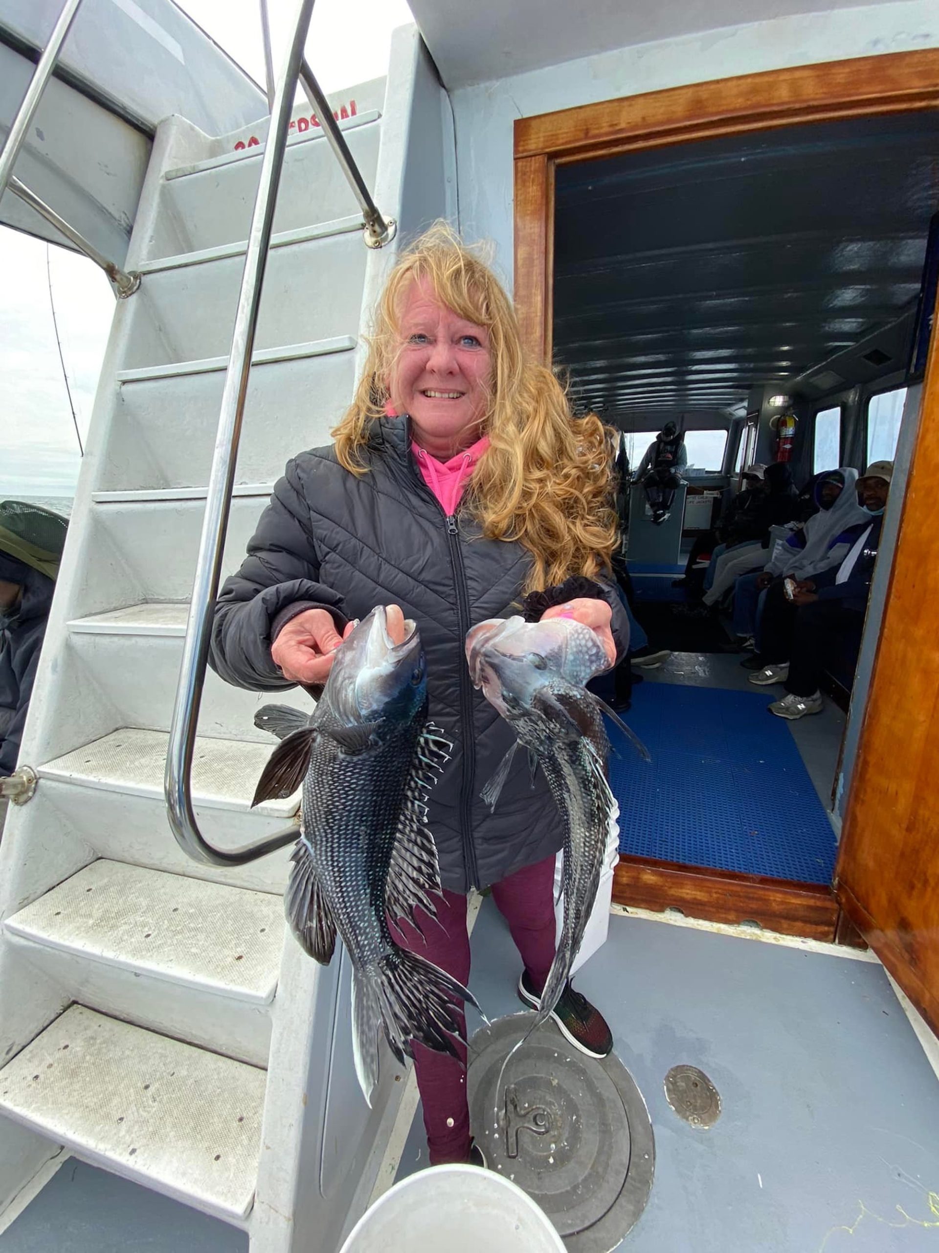 Captain Chris Mizurak of the Angler had a decent day on the ocean today even though conditions were “bumpy”. It was a picky bite, but there were plenty of sea bass for folks to take home.