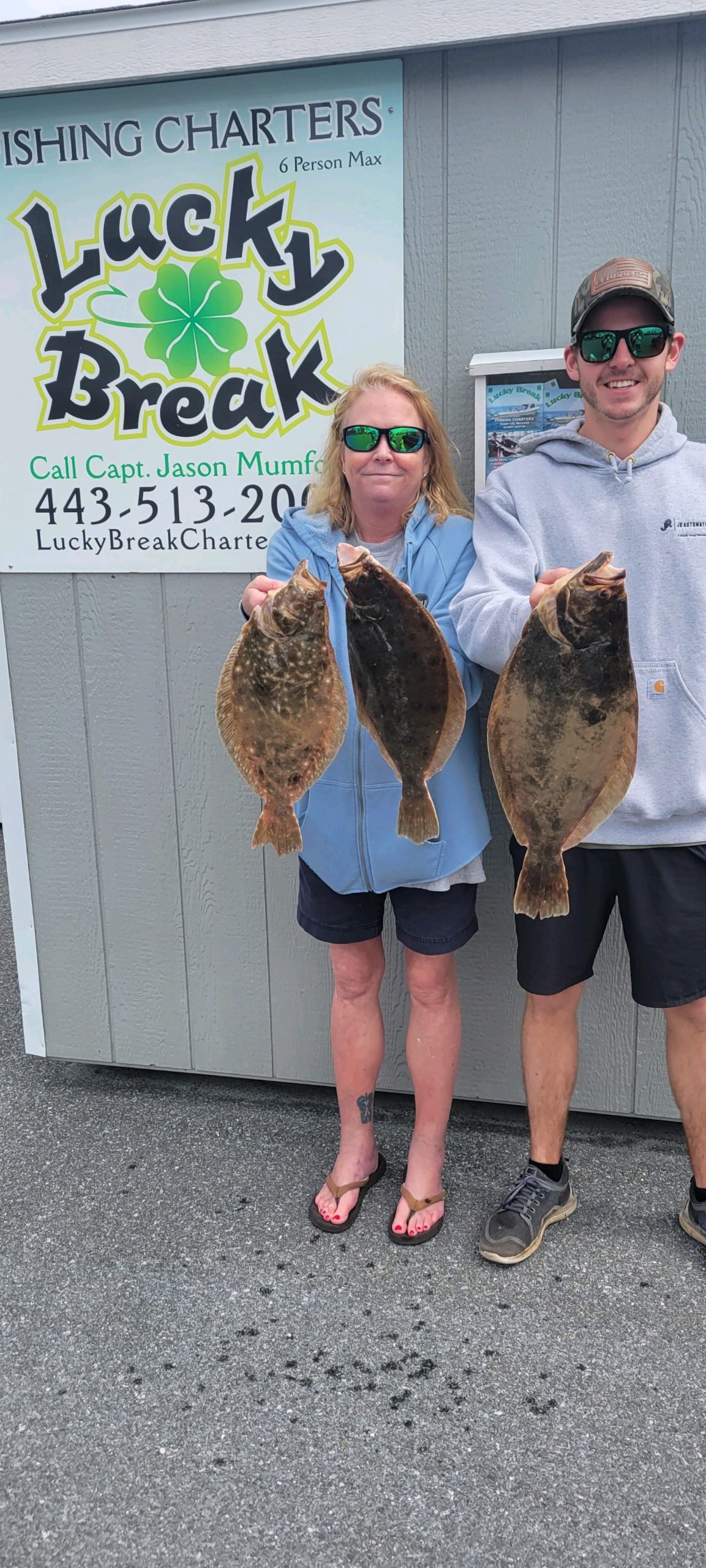 Captain Jason Mumford of Lucky Break Charters reported some pretty dirty water today, but when you’re good, you’re good. He was still able to catch some keeper flounder for both of his trips today.