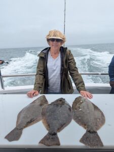 Anglers fishing on board Lucky Break had some fun fishing in the fog this morning as well with some good flounder ending up in the net.