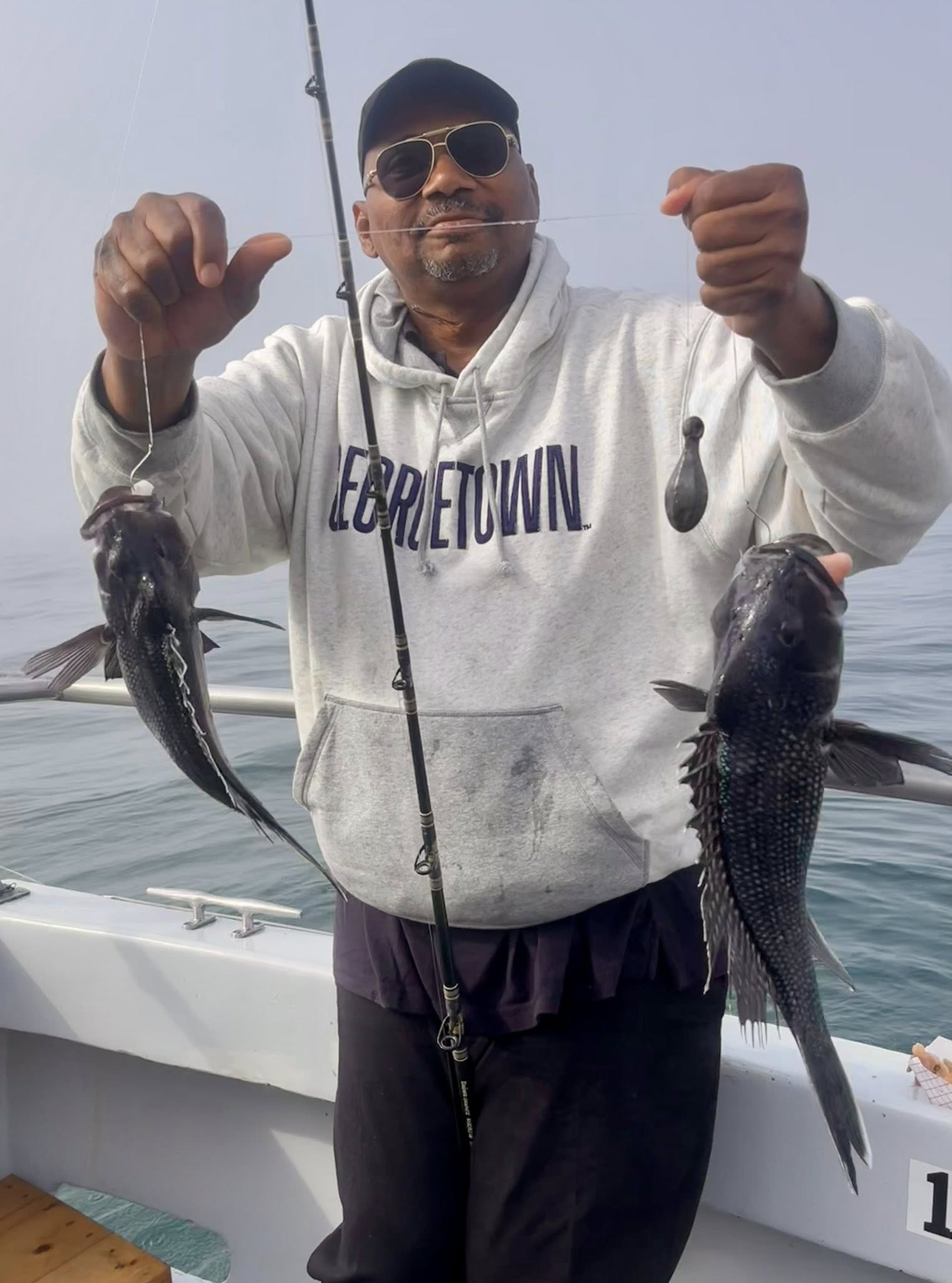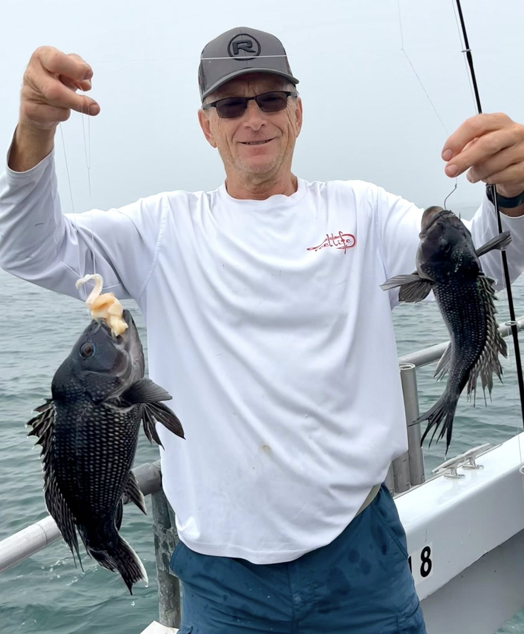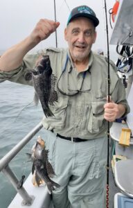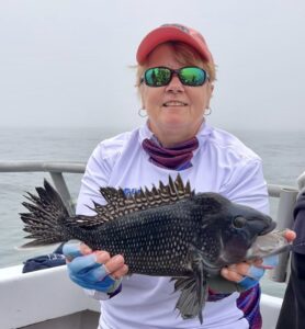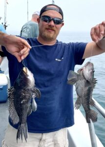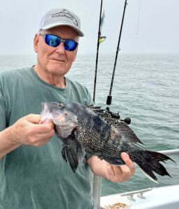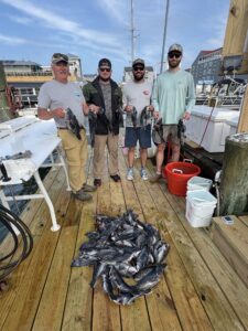 Captain Chase Eberle of Chasin’ Tides had a nice day for his anglers with a pile of keeper sea bass from the ocean. Chasin’ Tides also captured a tagged flounder in the bay this afternoon.