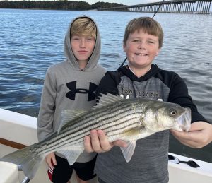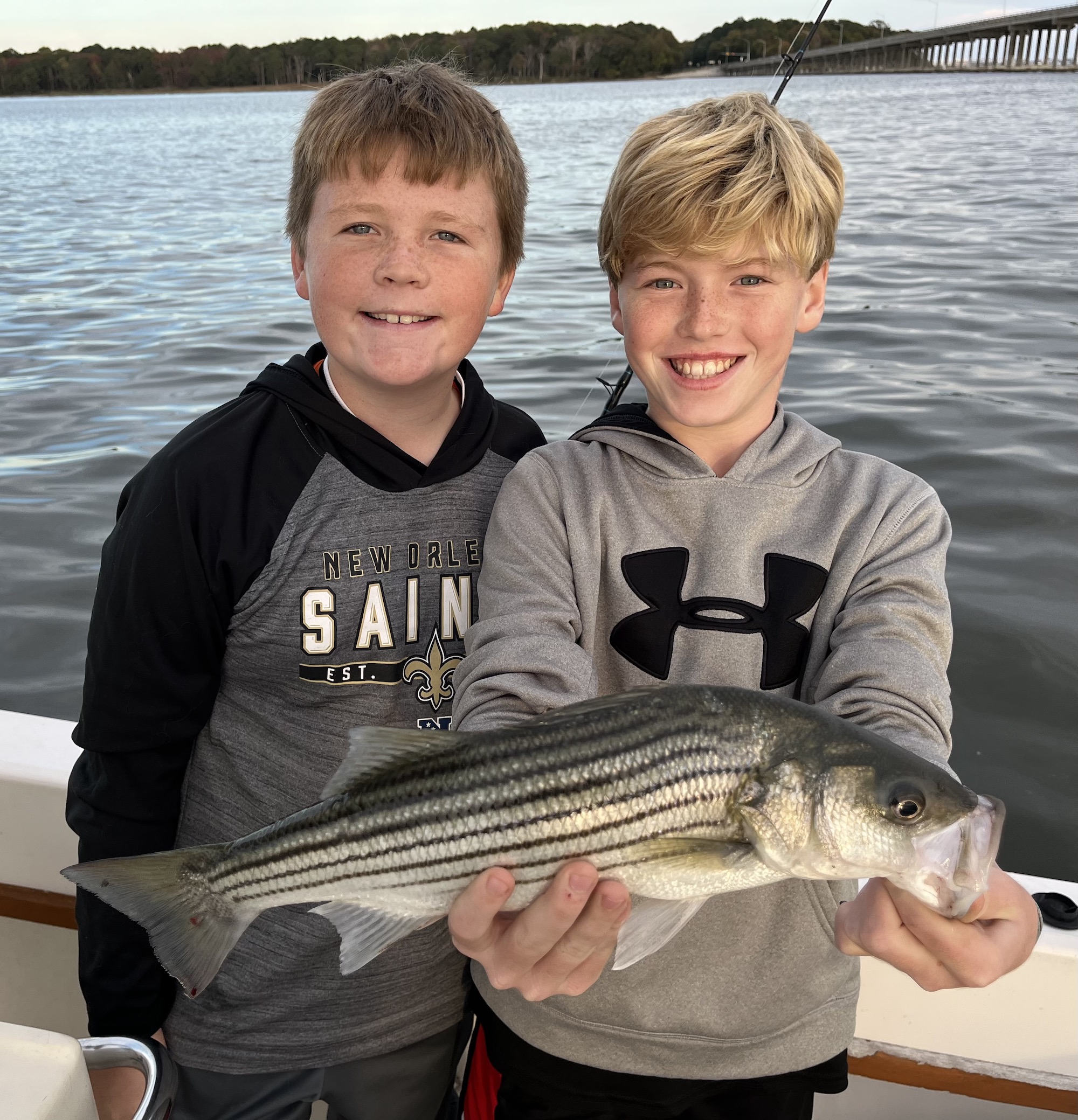 John Wooldridge, his son Grayson and Grayson’s buddy Marshall Forrester had a fun time in the St. Martin river yesterday evening when they caught and released some rockfish on trolled Rapala baits.