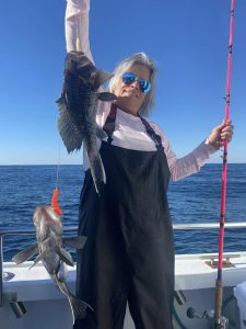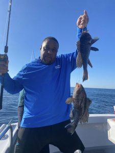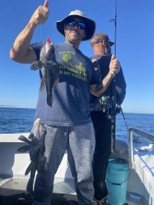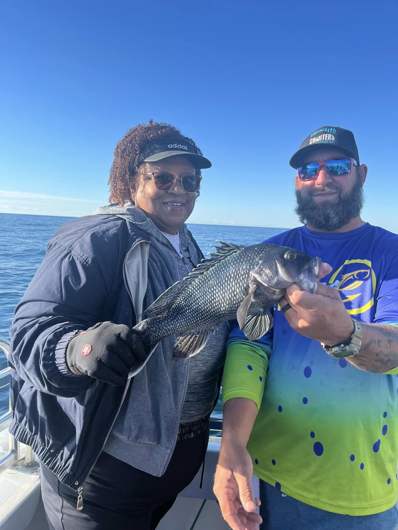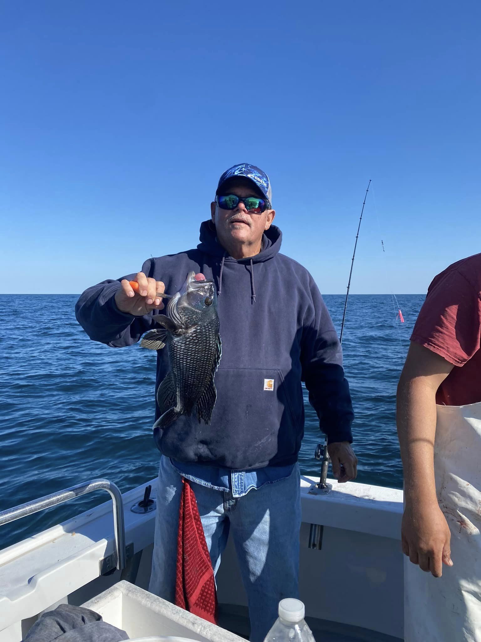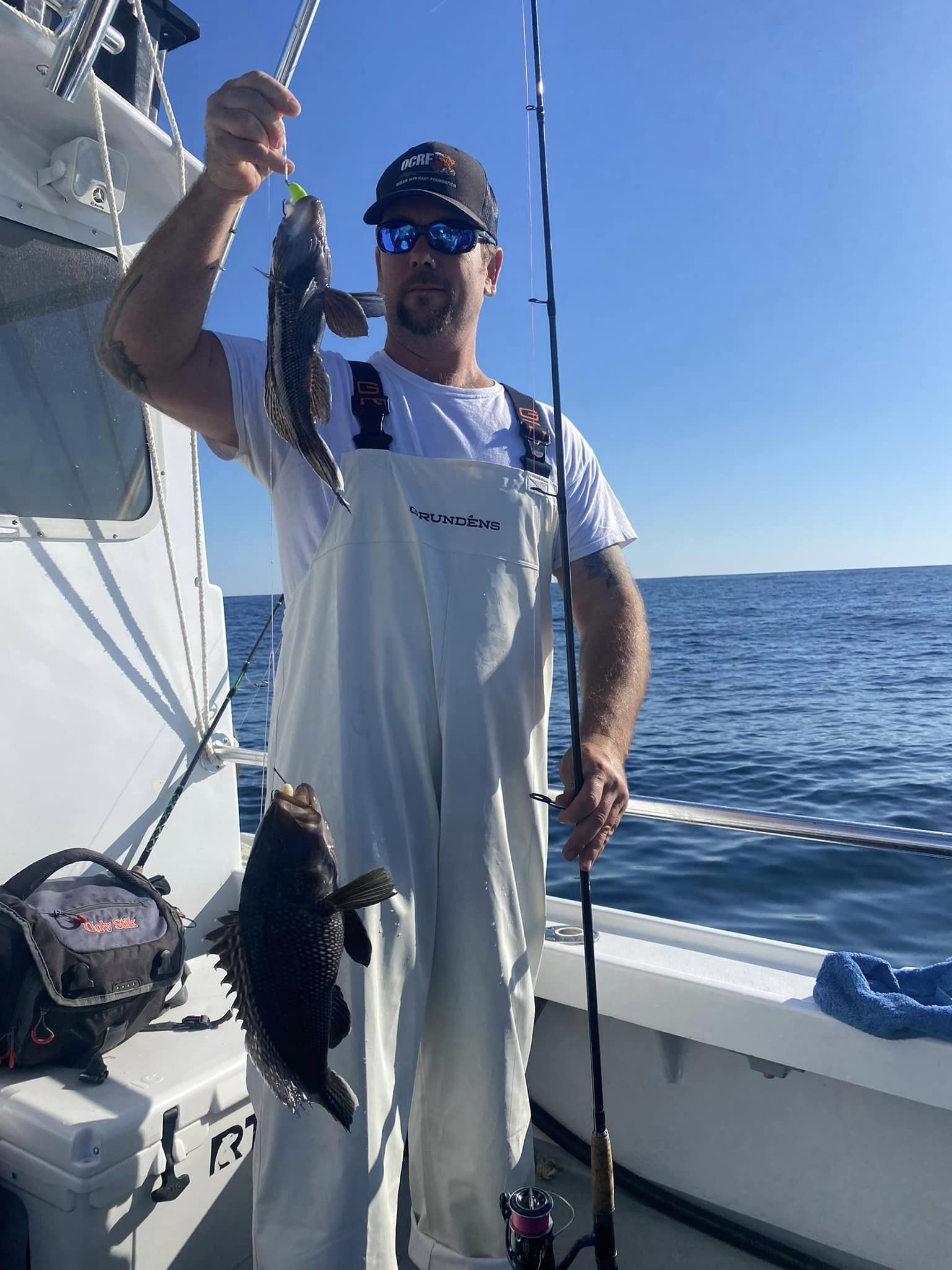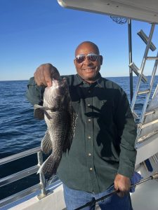 Captain Kane Bounds has had some excellent fishing the past few days with lots of nice sea bass in addition to a couple of flounder. Flounder fishing got tough after the remnants of Ian rolled out of town, but things are settling down and that should pick up as we move through the fall. Until then there are plenty of sea bass and Captain Kane and his crews have been limiting out on most trips.