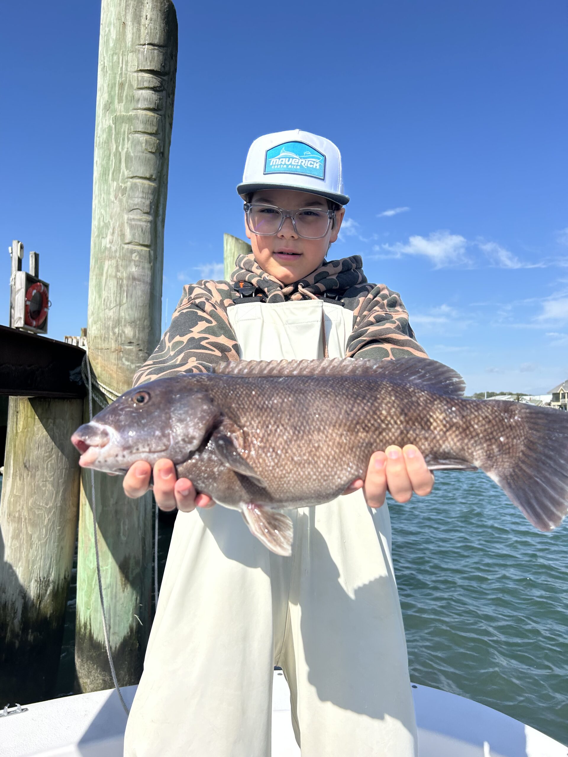 Fisher Zimmerman and Ashton Evans had some fun catch and release rockfish action at the route 90 bridge and caught one keeper tog of 18” near the Commercial Harbor.