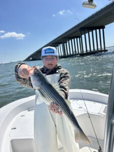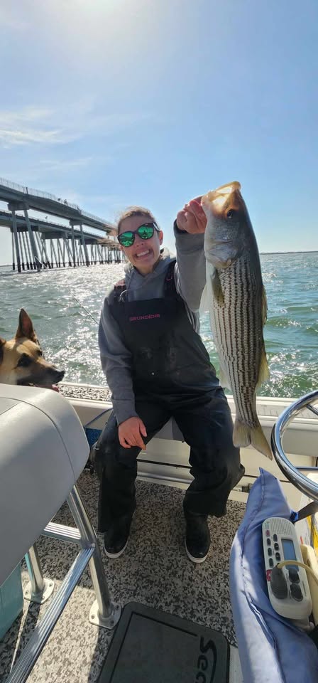 LeAndrea Feight was fishing with Jordan Helsel down at the Verrazano Bridge behind Assateague where they caught and released a bunch of schoolie sized rockfish.