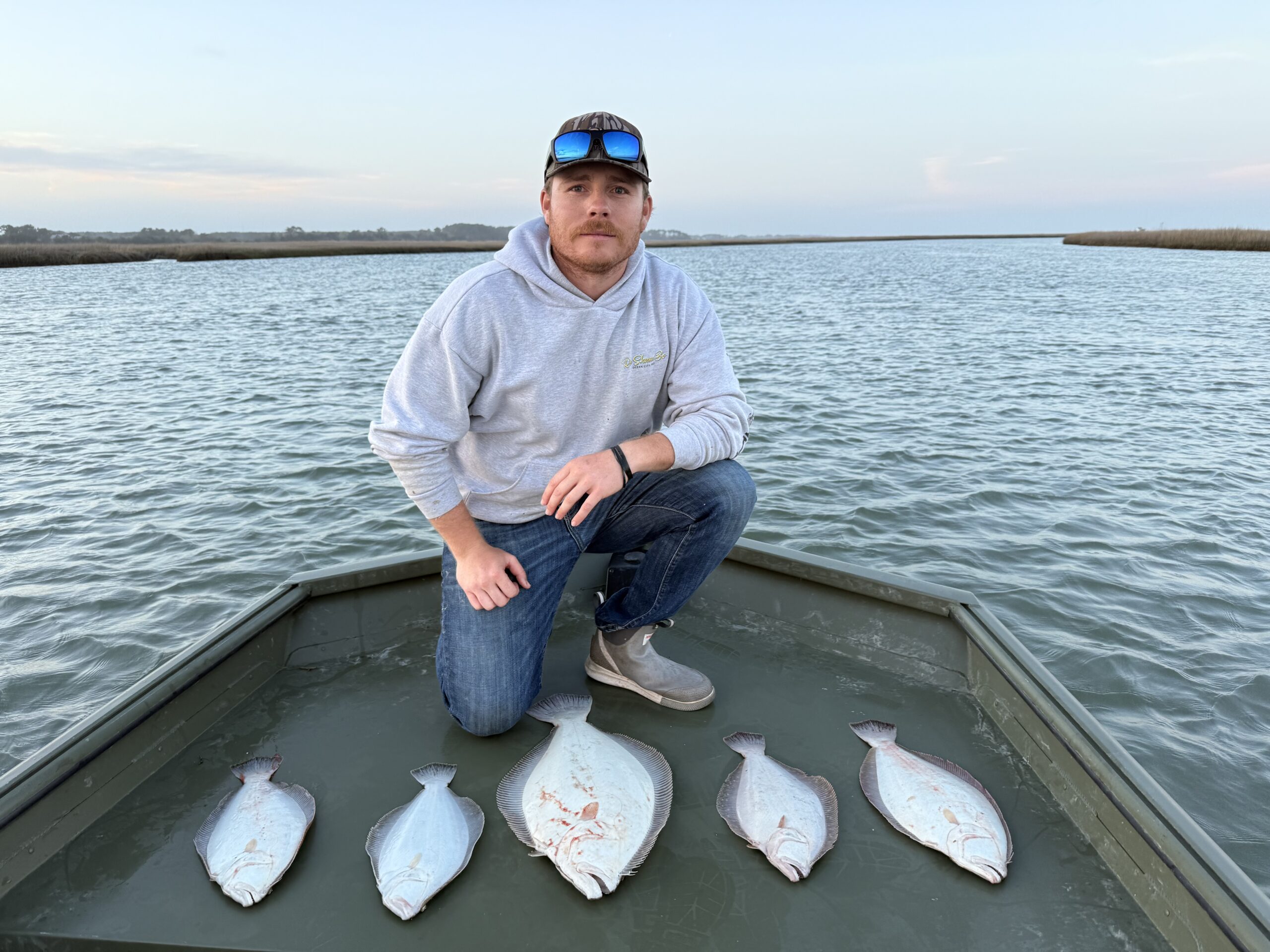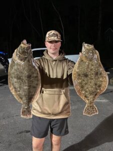 Caleb Powell and the crew have been fishing the ESVA as well and they’ve had some very good fishing too. Two days in a row Caleb’s crew had four keeper flounder and then eight keeper flounder using Deadly Tackle Deadly Doubles and orange Gulp.