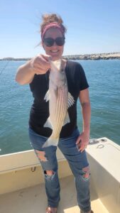 Captain Jason Mumford of Lucky Break had a couple of good trips today for his anglers. This morning it was some fun catch and release rockfish action at the OC inlet and this afternoon it was three keeper flounder from the south bay.
