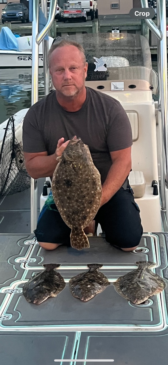 Rich Daiker fished the route 50 bridge today with live bunker and caught his limit of flounder up to an impressive 23.5″. He also caught and released a small gag grouper.