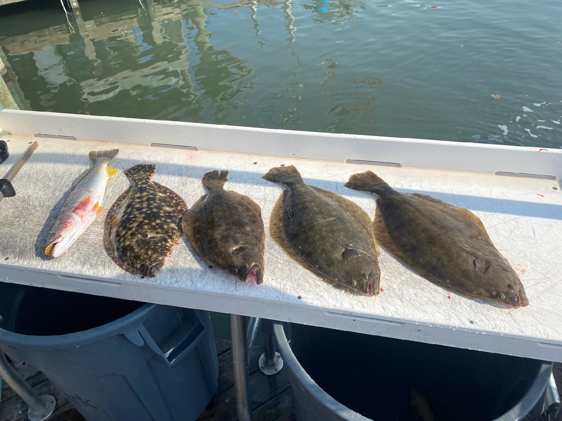 Captain Dave Caffrey of On the Run had a couple of productive trips for his anglers today. This morning it flounder and this afternoon it was a 21″ trout and more keeper flounder to 4.5 pounds.