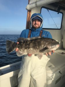 Had a nice weather window today with mild winter temps, mostly sunny skies and light winds making it a great day to get out on the rip. The wind will blow a “gale” tomorrow so the ocean is out for a day or so, but hopefully she calms down quick because tog fishing is pretty darn good.