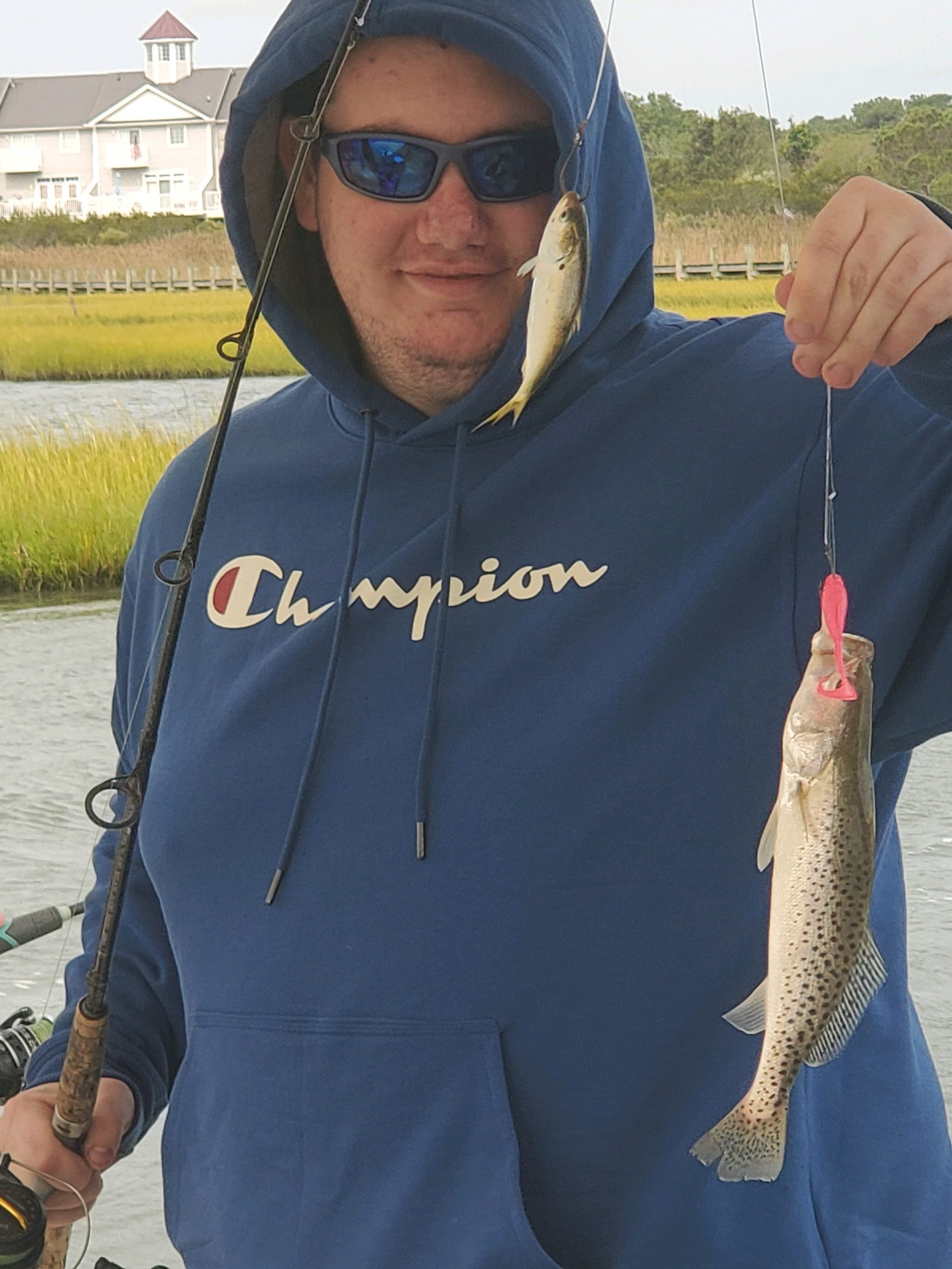 Fall is definitely in the air. This morning we had temps on land in the low 60s and the northeast wind continued to blow. The ocean was pretty much closed for business again, but some guys got out in the bay and made a nice day out of it.