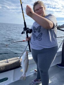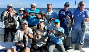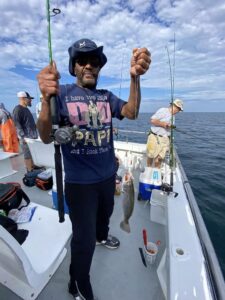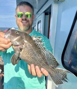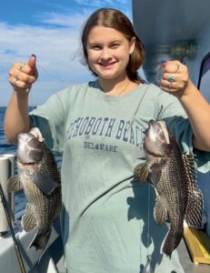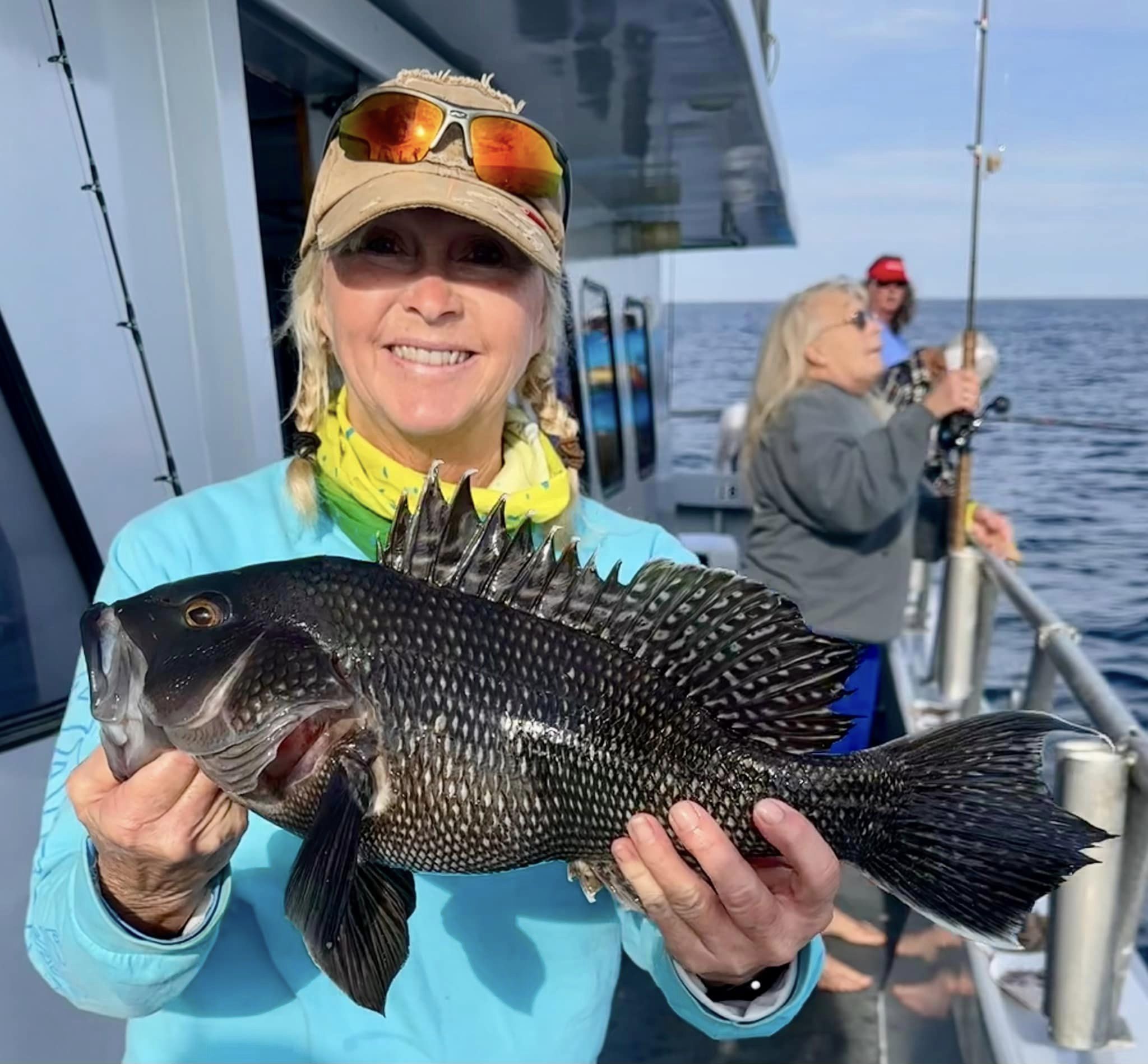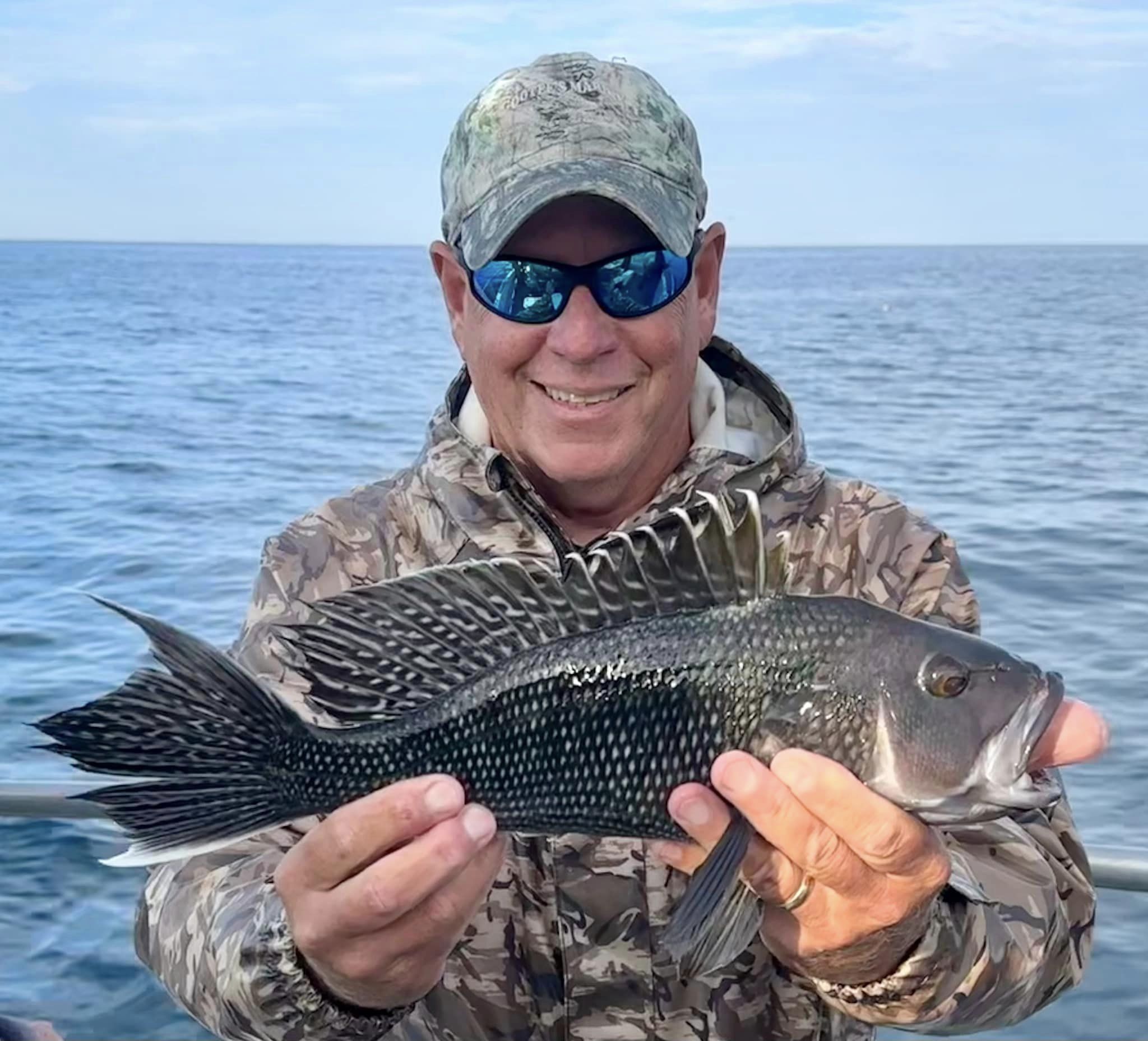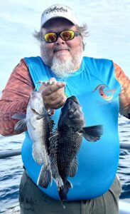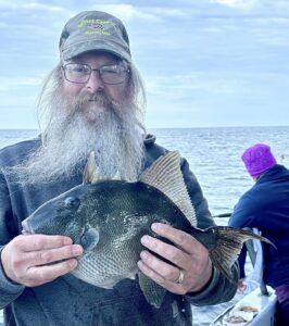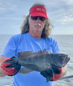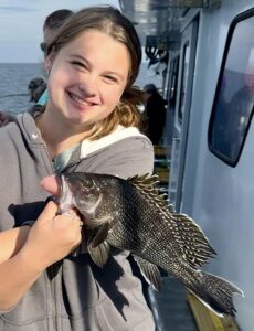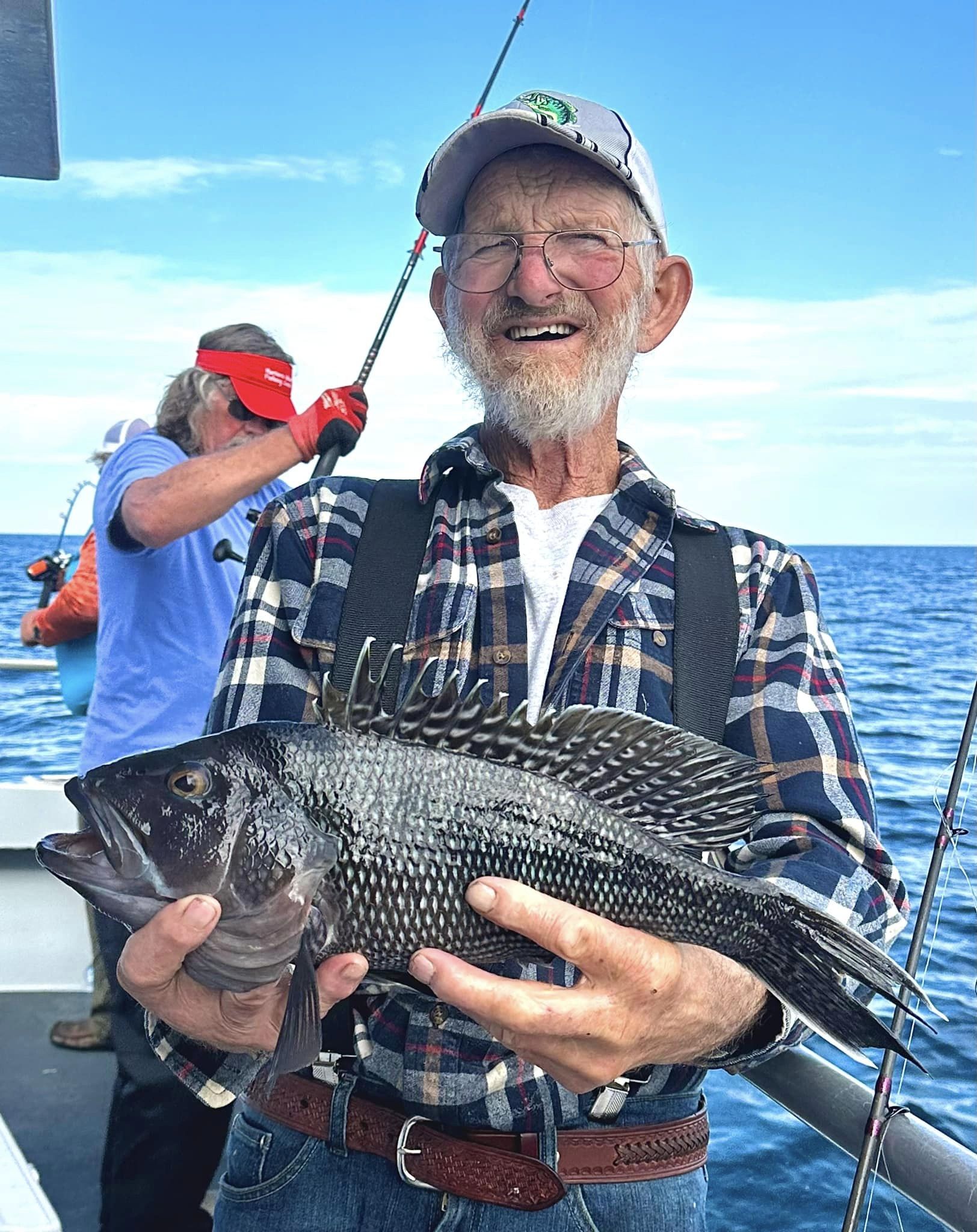JD and Mary Eddy, and Biscuit had a good day of fishing on their final trip of the season boxing up three flounder and 22 sea bass.