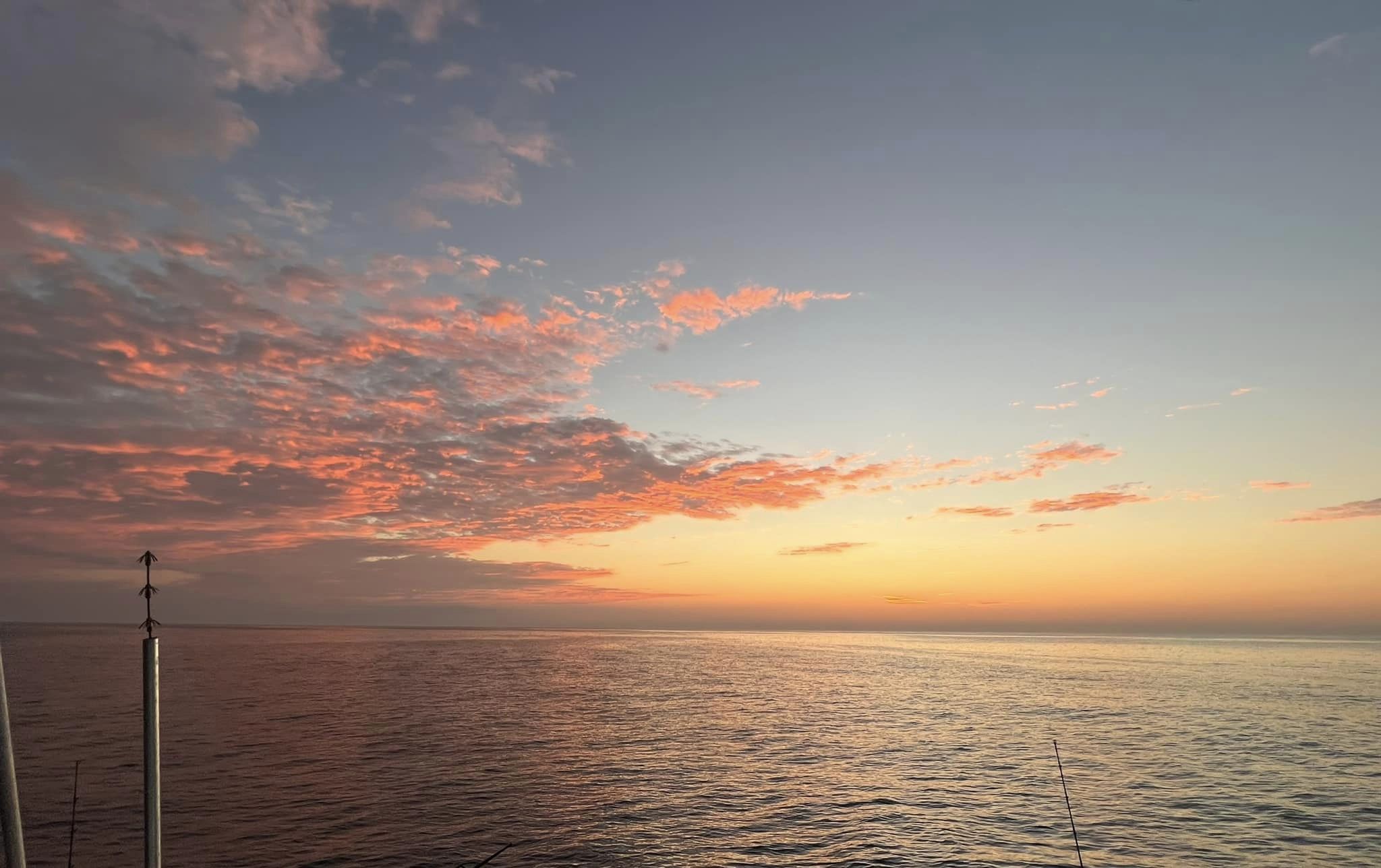 Tied her loose into yet another fabulous Aug-tober day. Found another calm sea and enjoyed perhaps the most fantastic sunrise all season.