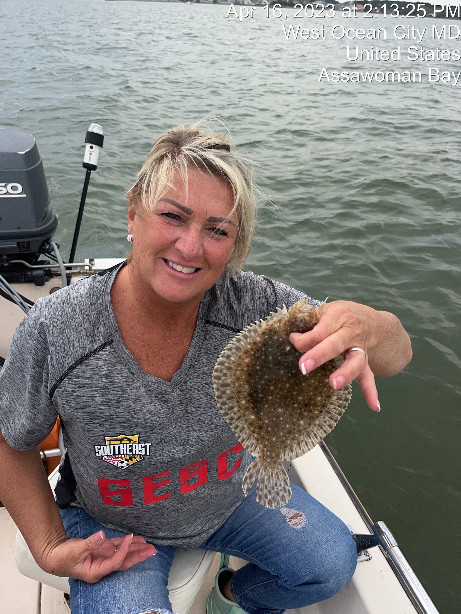 Rich Daiker had Stacey Shindler and her son Reece out fishing today and they had a good trip. Reese used the Deadly Tackle Deadly Double in chartreuse to land a 17″ keeper flounder and Stacey found a rare one in a very cool windowpane flounder.