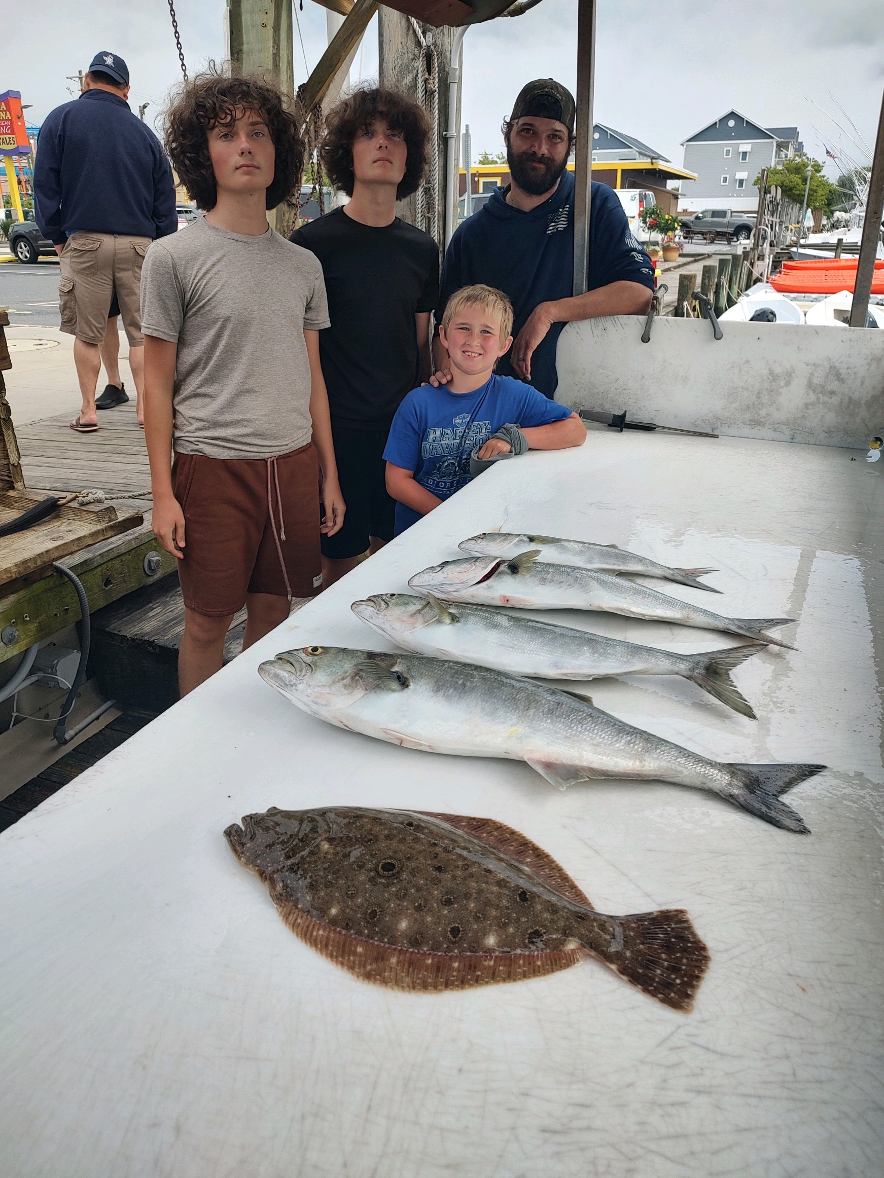 Captain Dave Caffrey of On the Run was dodging rain showers today and put his folks on some bluefish and one keeper flounder.