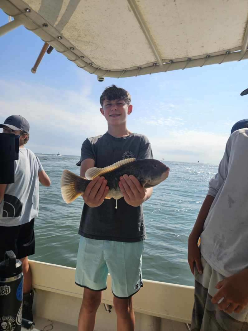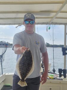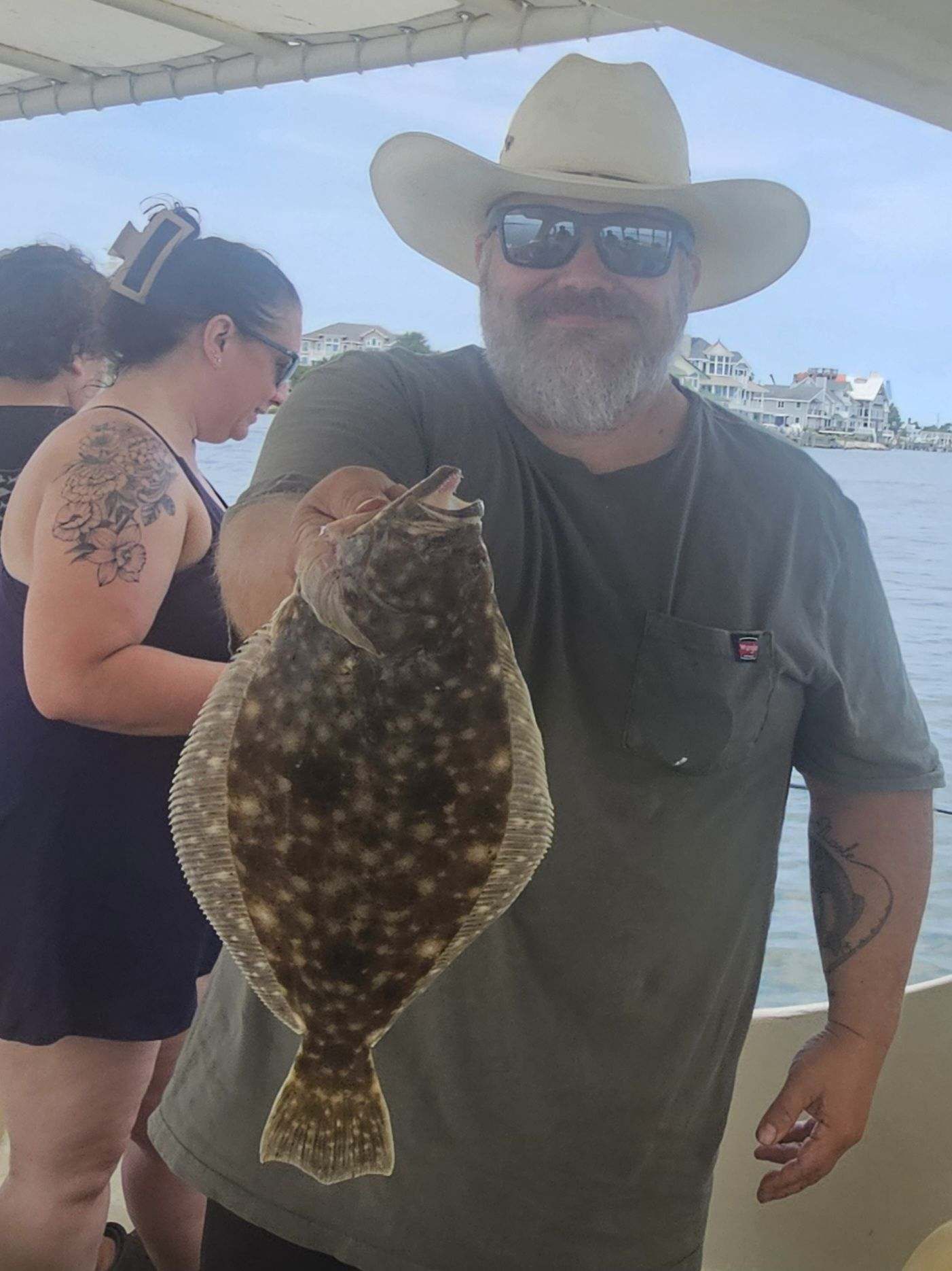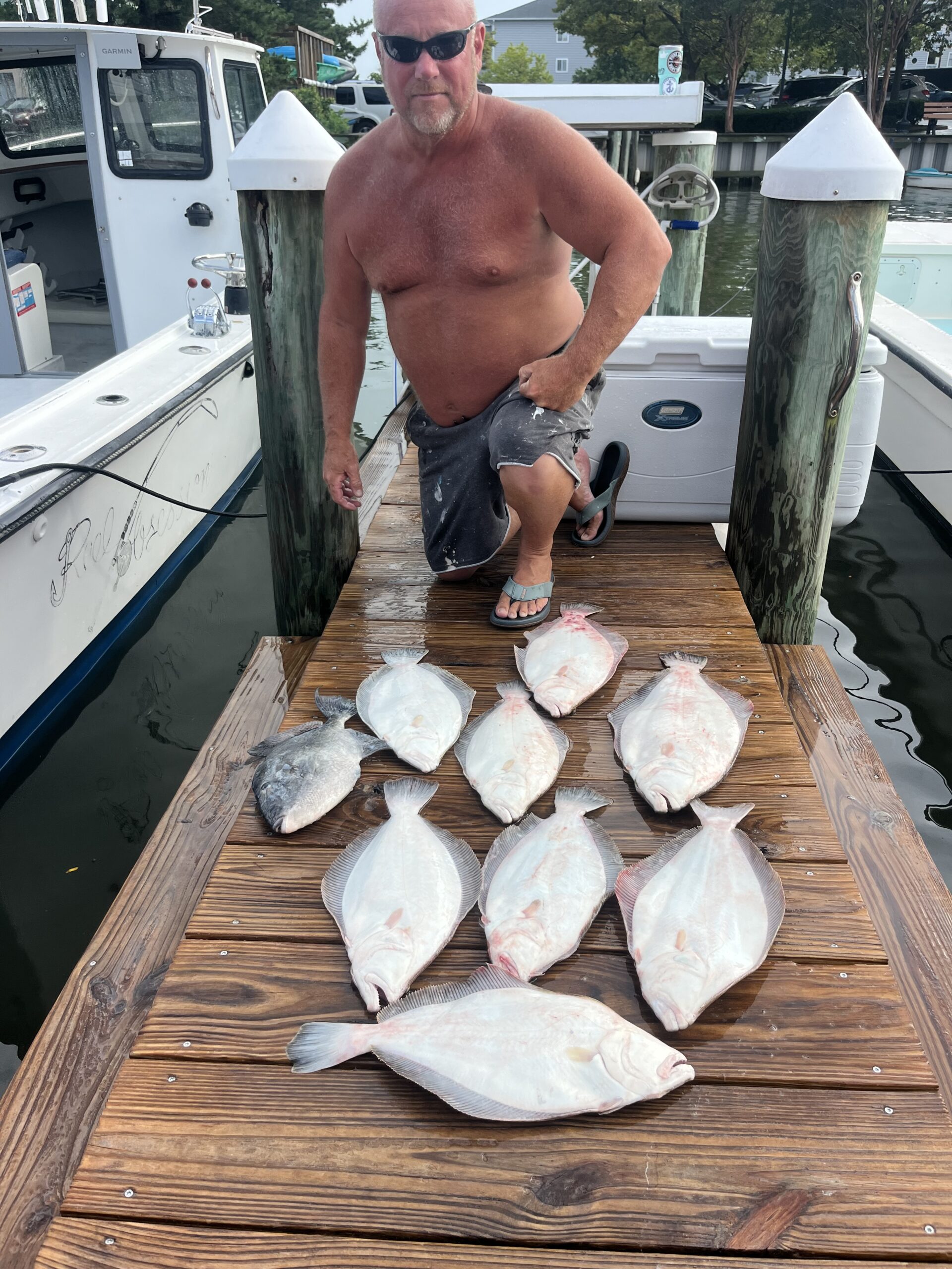 Captain Jason Mumford of Lucky Break had some nice trips today with keeper Flounder and keep her tall dog going home with happy clients.