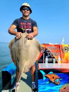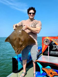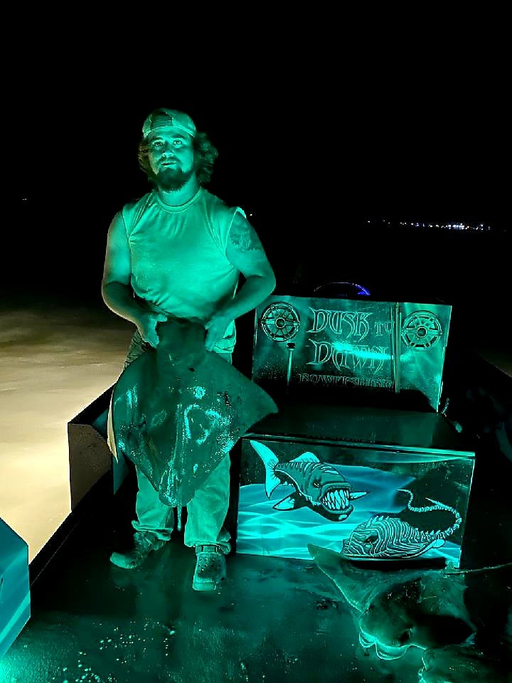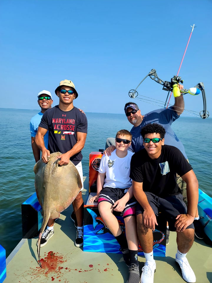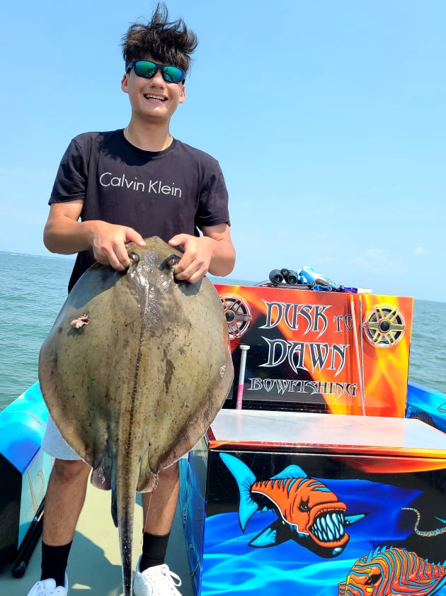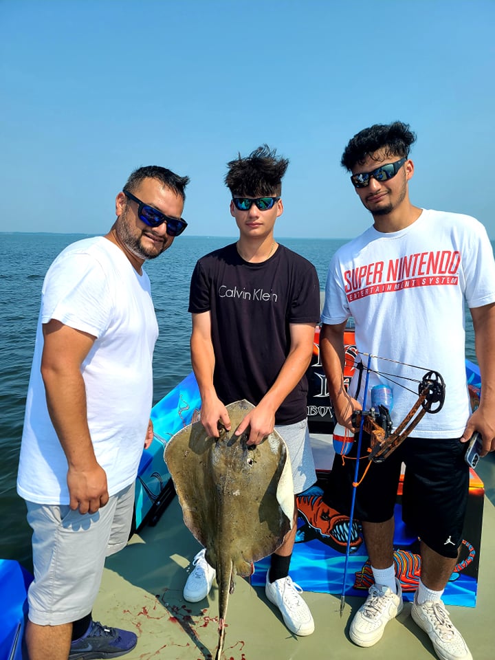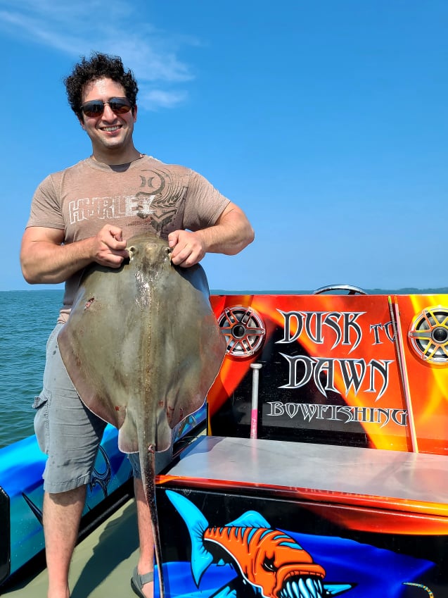 Shooters fishing on board Dusk to Dawn Bowfishing with Captain Marc Spagnola are hitting their mark (no pun intended) both day and night on cow nosed and southern rays.