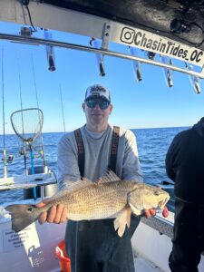 Captain Chase Eberle of Chasin Tides Charters had a nice day of bottom fishing on the ocean today when he put his anglers on a limit of tautog and this nice red drum.