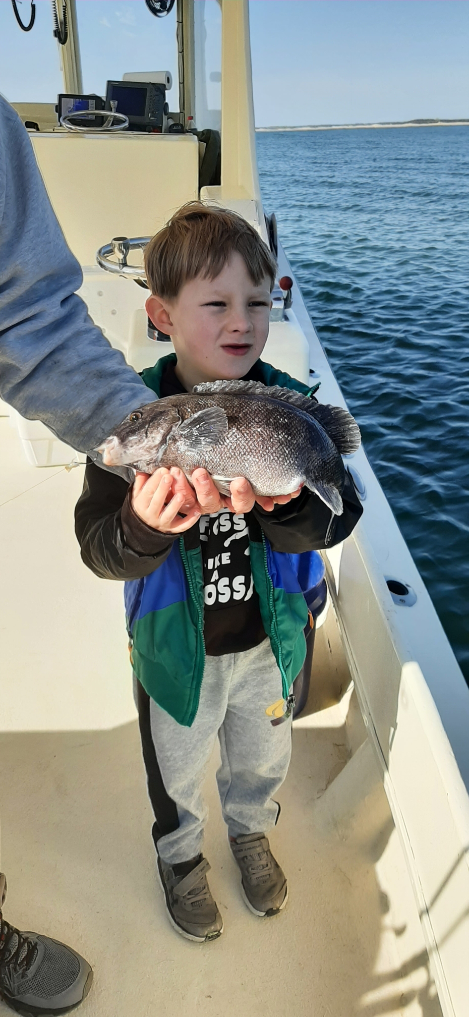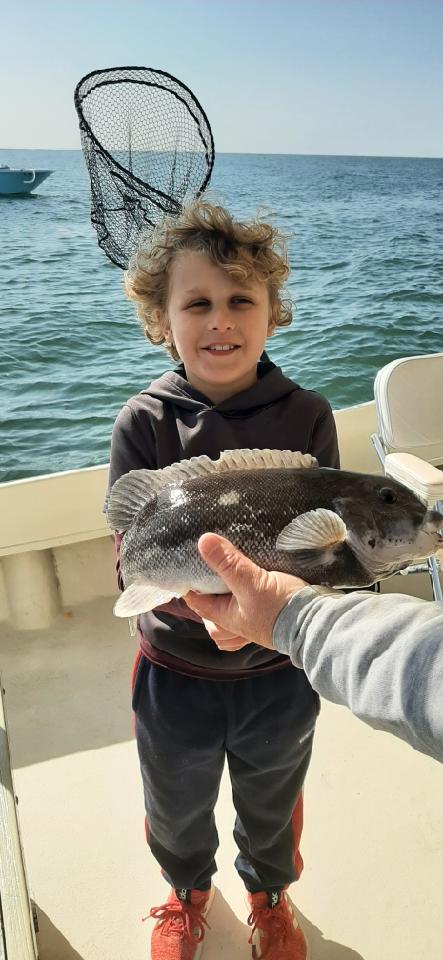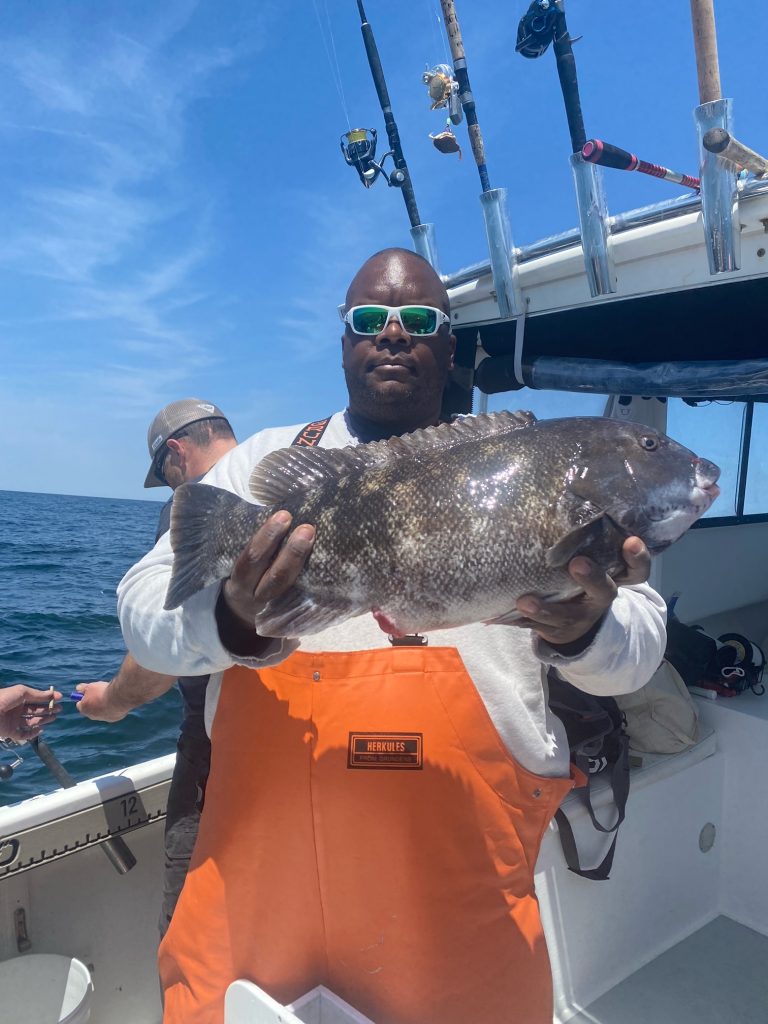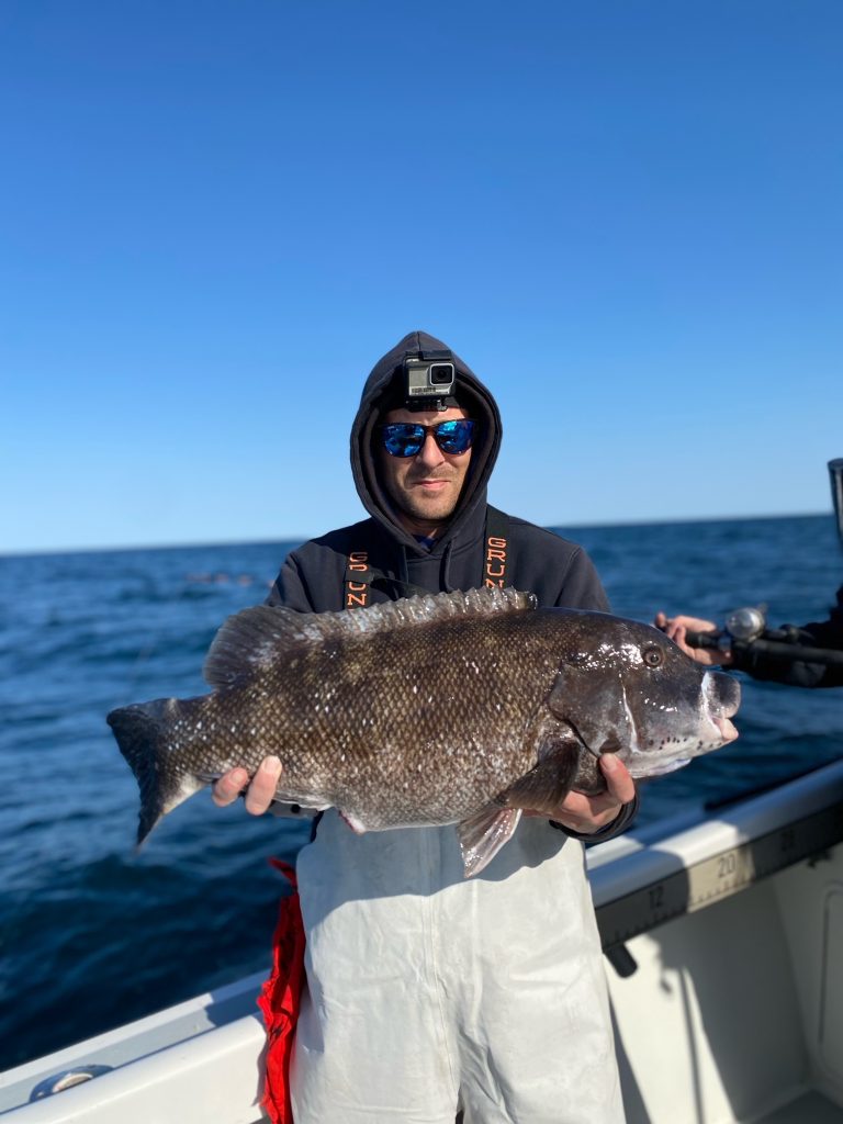 Captain Chase Eberle of Chasin’ Tides Charters was happy to get out in the ocean today where he put anglers on nice tautog of 12 and 14.5 pounds.