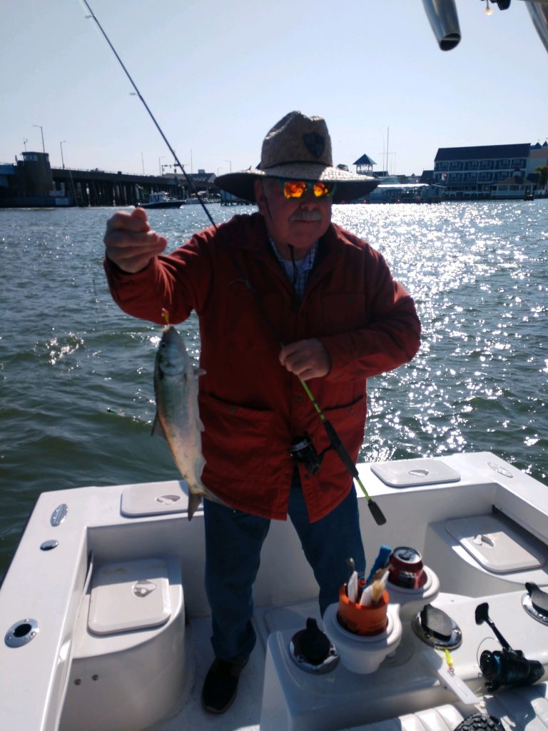 Captain Wayne Blanks of Bayside Guide Service took his anglers to the OC inlet this morning where he reported all the shad that you wanted.