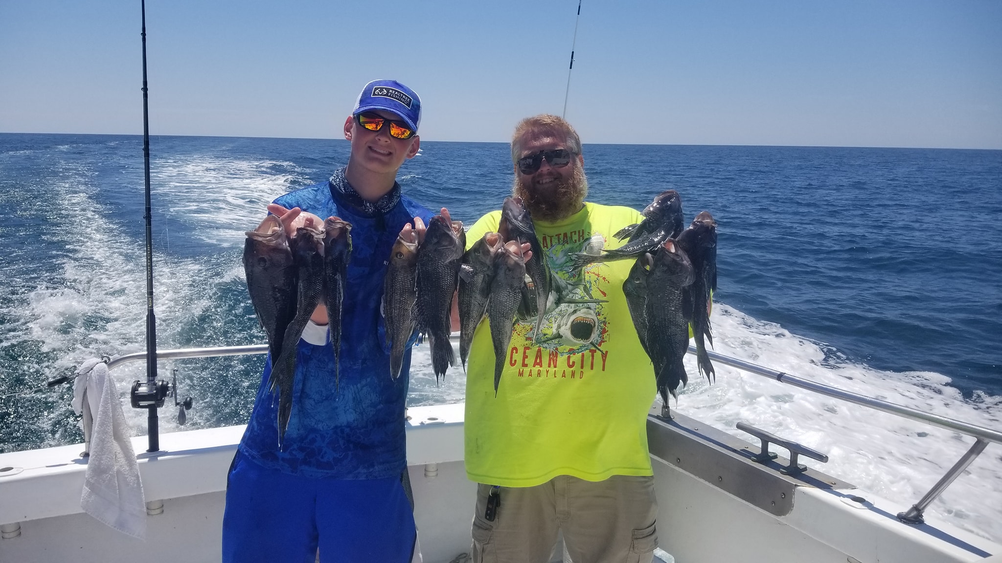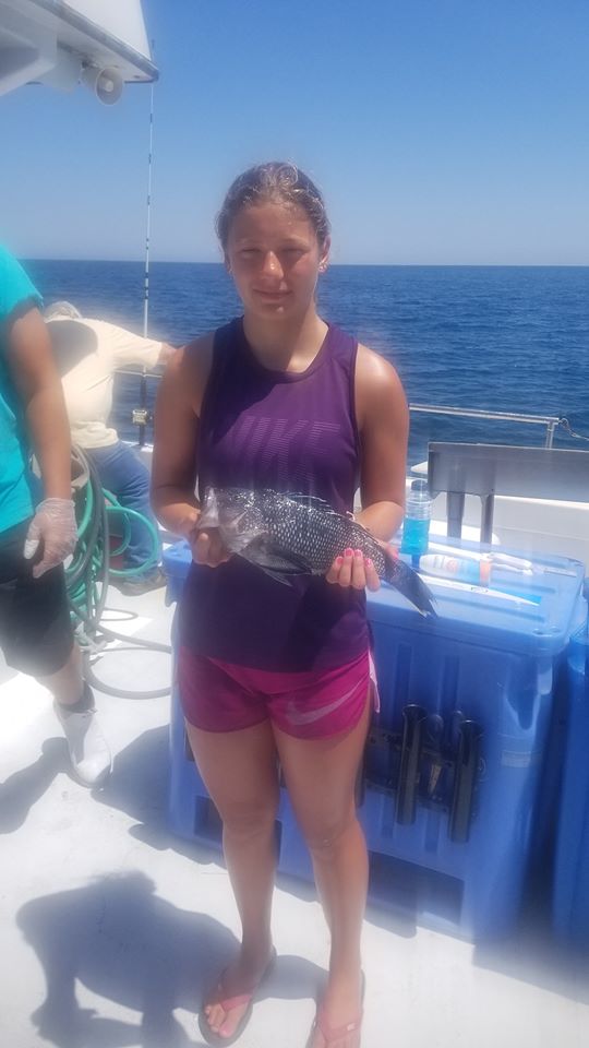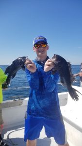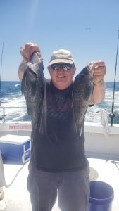 Anglers fishing on the Angler with Captain Chris Mizurak had a nice catch of sea bass and some calm seas today.