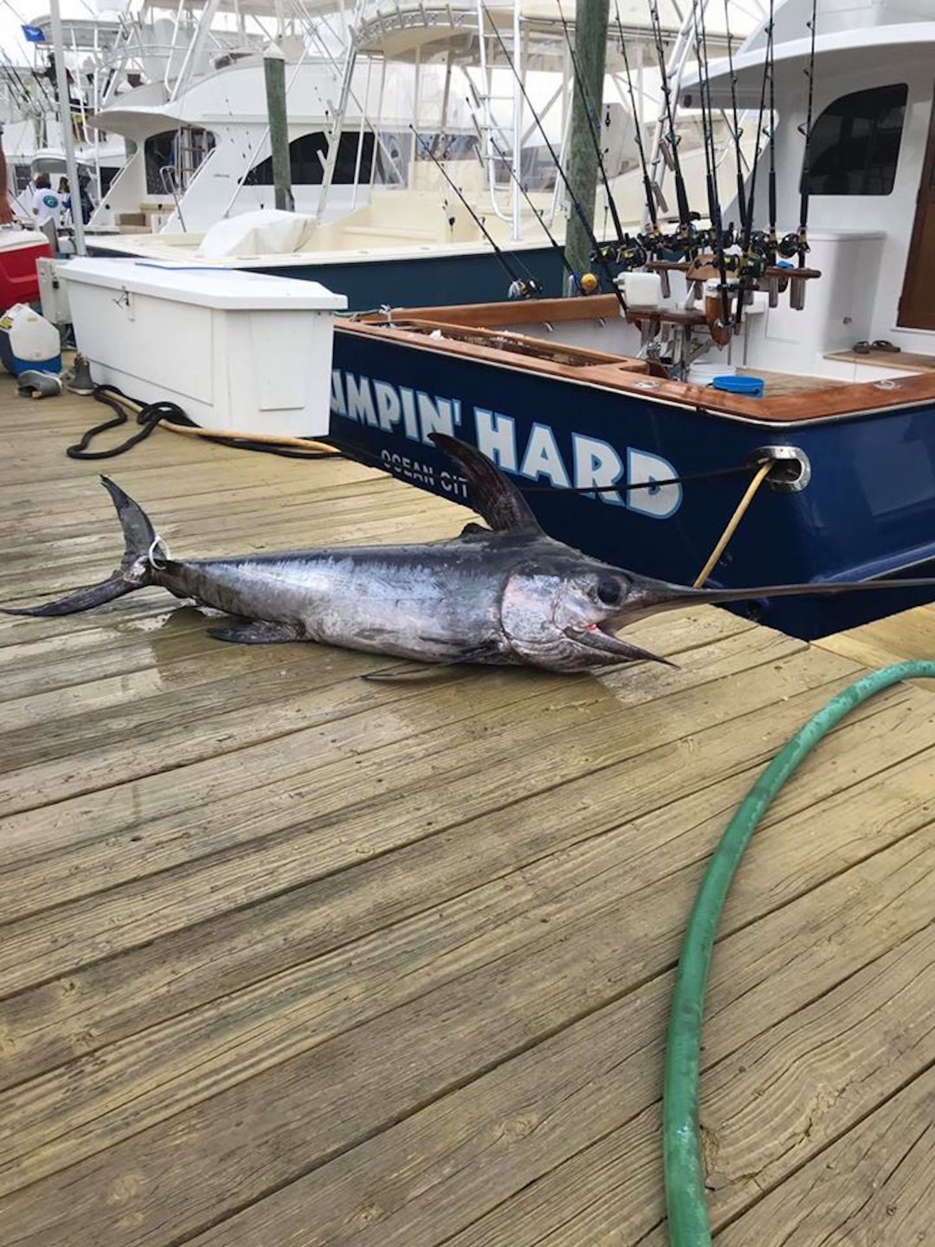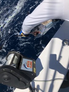 Captain Mike Burt, mate David Burt and the crew of the Pumpin’ Hard had a great day offshore as well with the billfish. The Pumpin’ Hard crew released two blue marlin for two bites and also decked this nice swordfish.