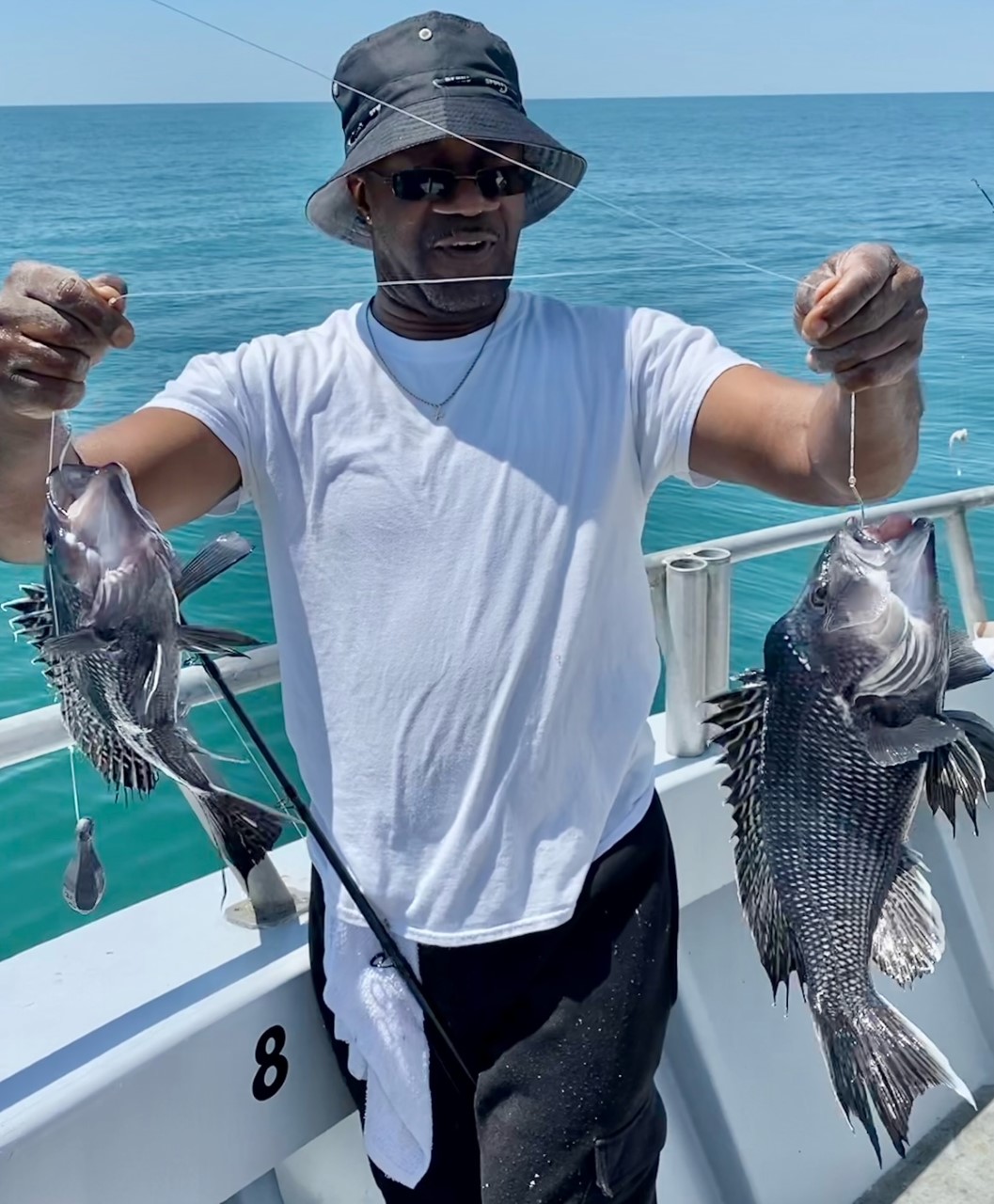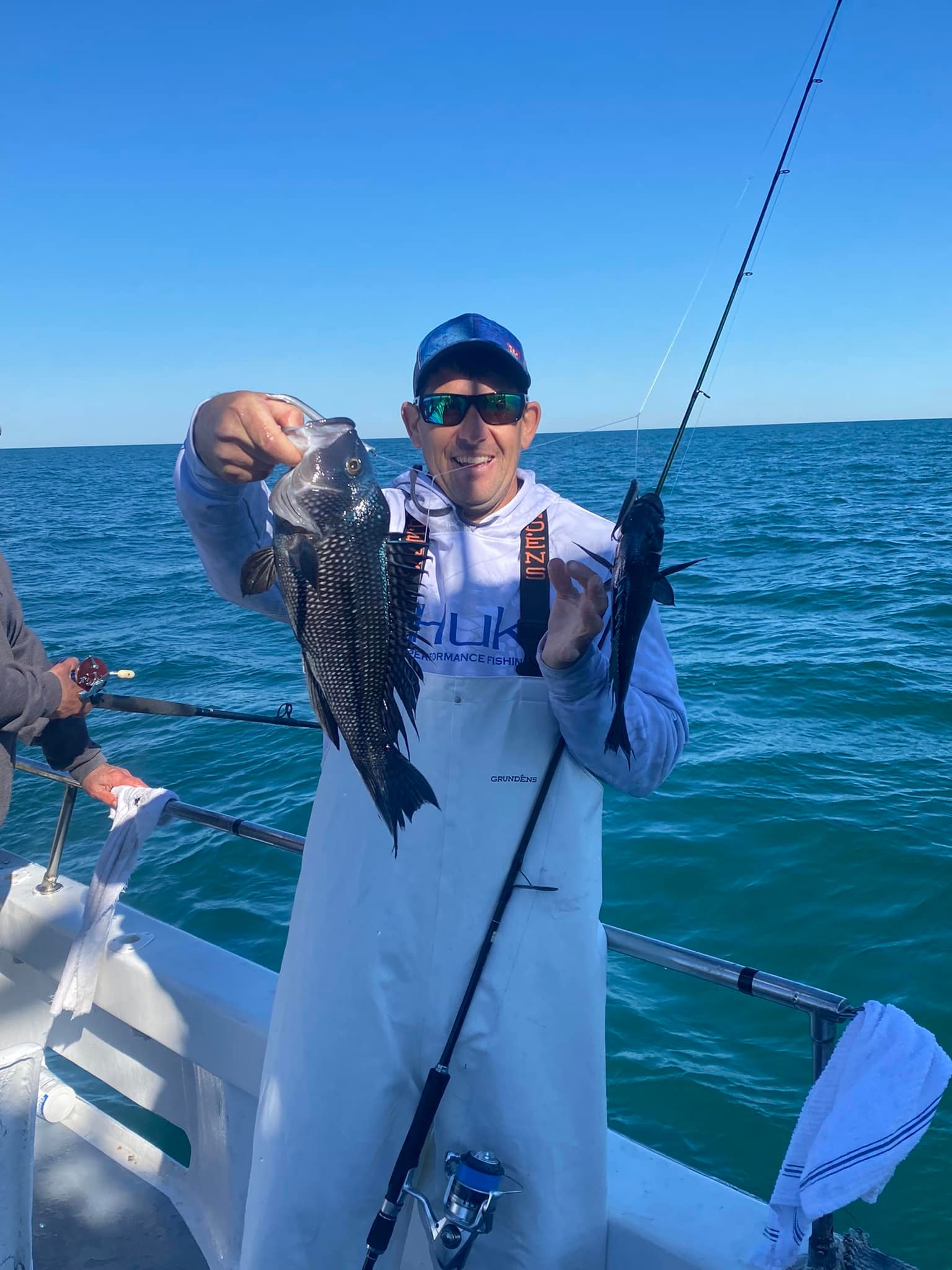 The sea bass were biting again on calm seas for Captain Monty Hawkins of the Morning Star.