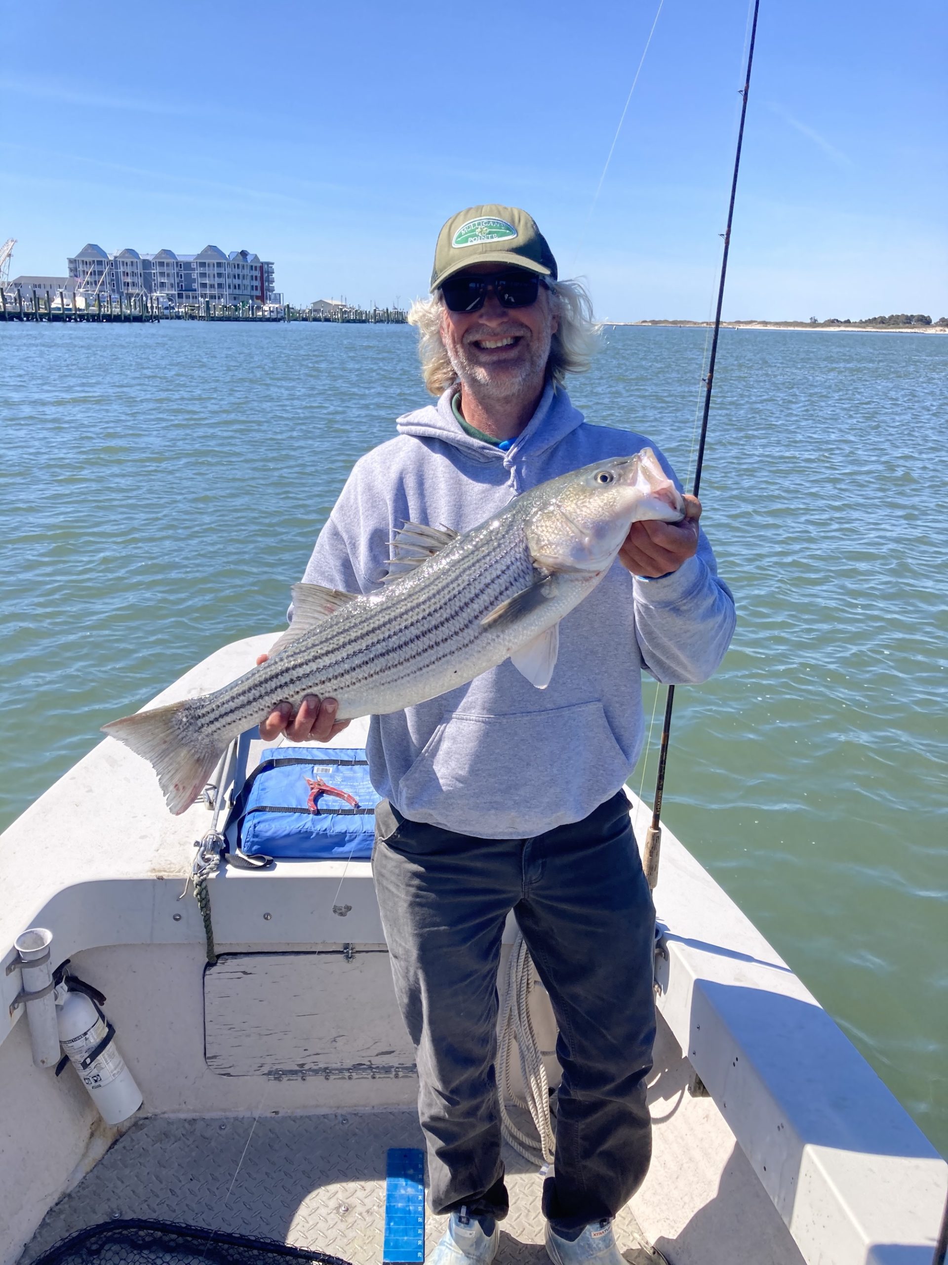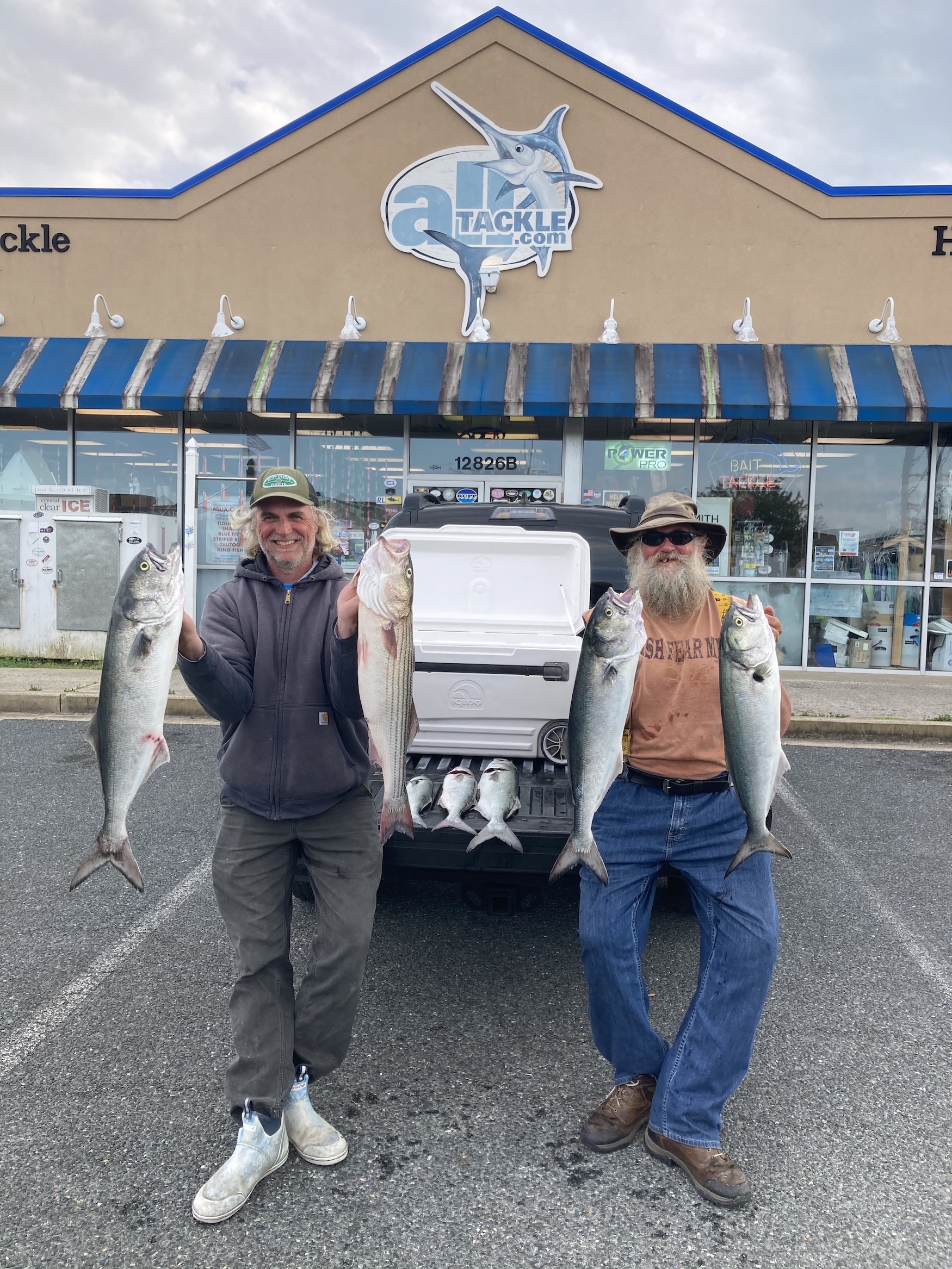 Big Bird Cropper and Shaun Flaherty hit the Ocean City Inlet and route 50 bridge today and had some great luck per usual. Bird and Shaun dredged up a keeper rockfish at 31″, had some throwback rockfish and also caught some very nice bluefish on Roy Rigs.