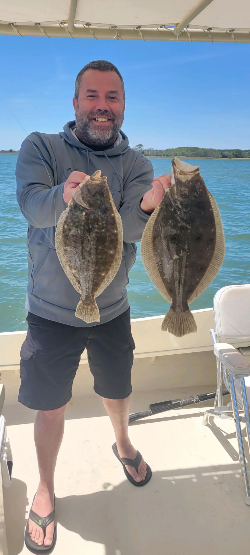 Captain Jason Mumford of Lucky Break Charters put this lucky angler on two keeper flounder and several more throwbacks today.
