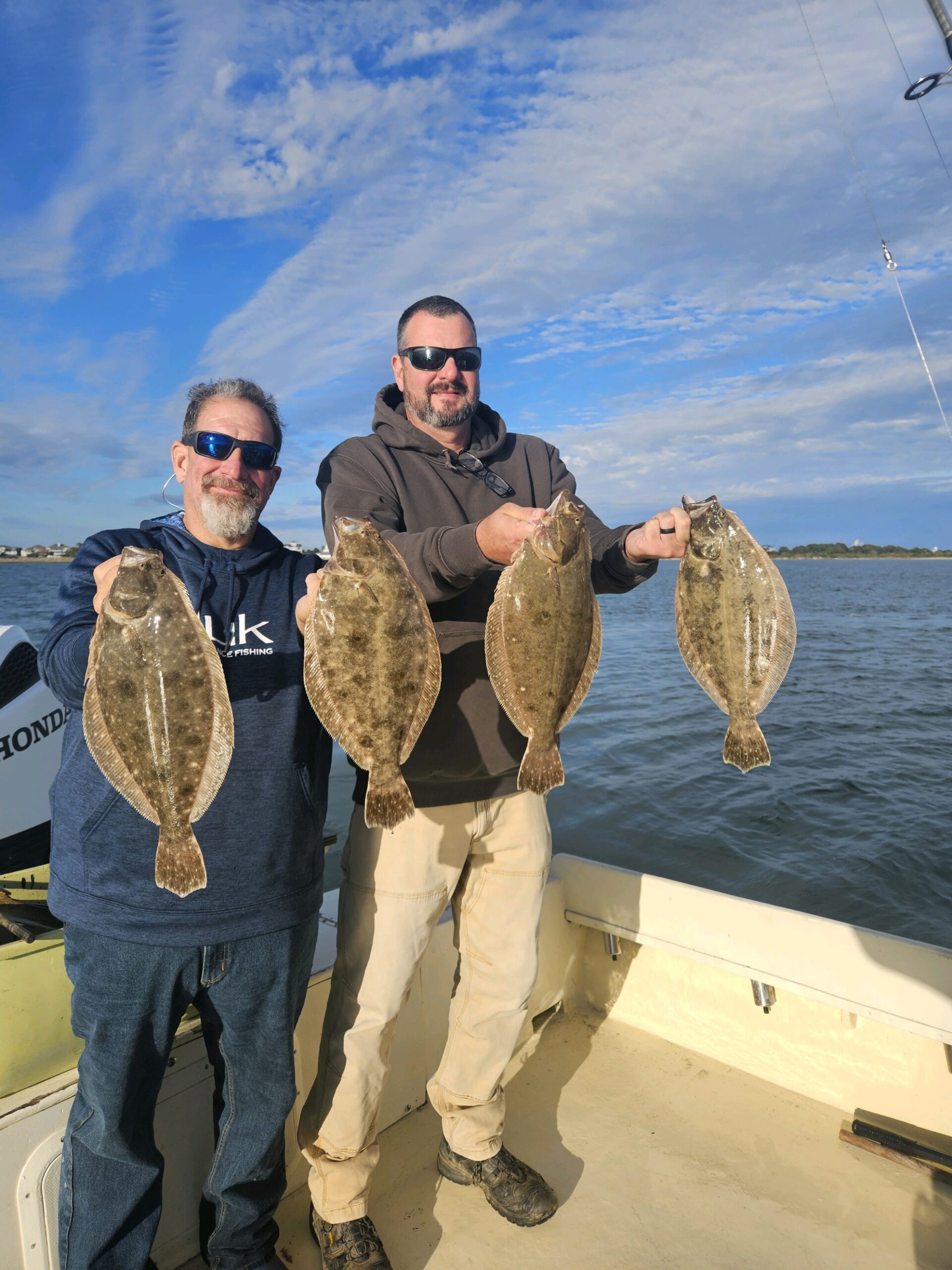 We didn’t have a terrible weather day today, but it wasn’t the greatest either. The wind is gonna blow a little bit this weekend before laying out early next week so let’s hope the water in the back bay stays clean so these flounder keep snapping.