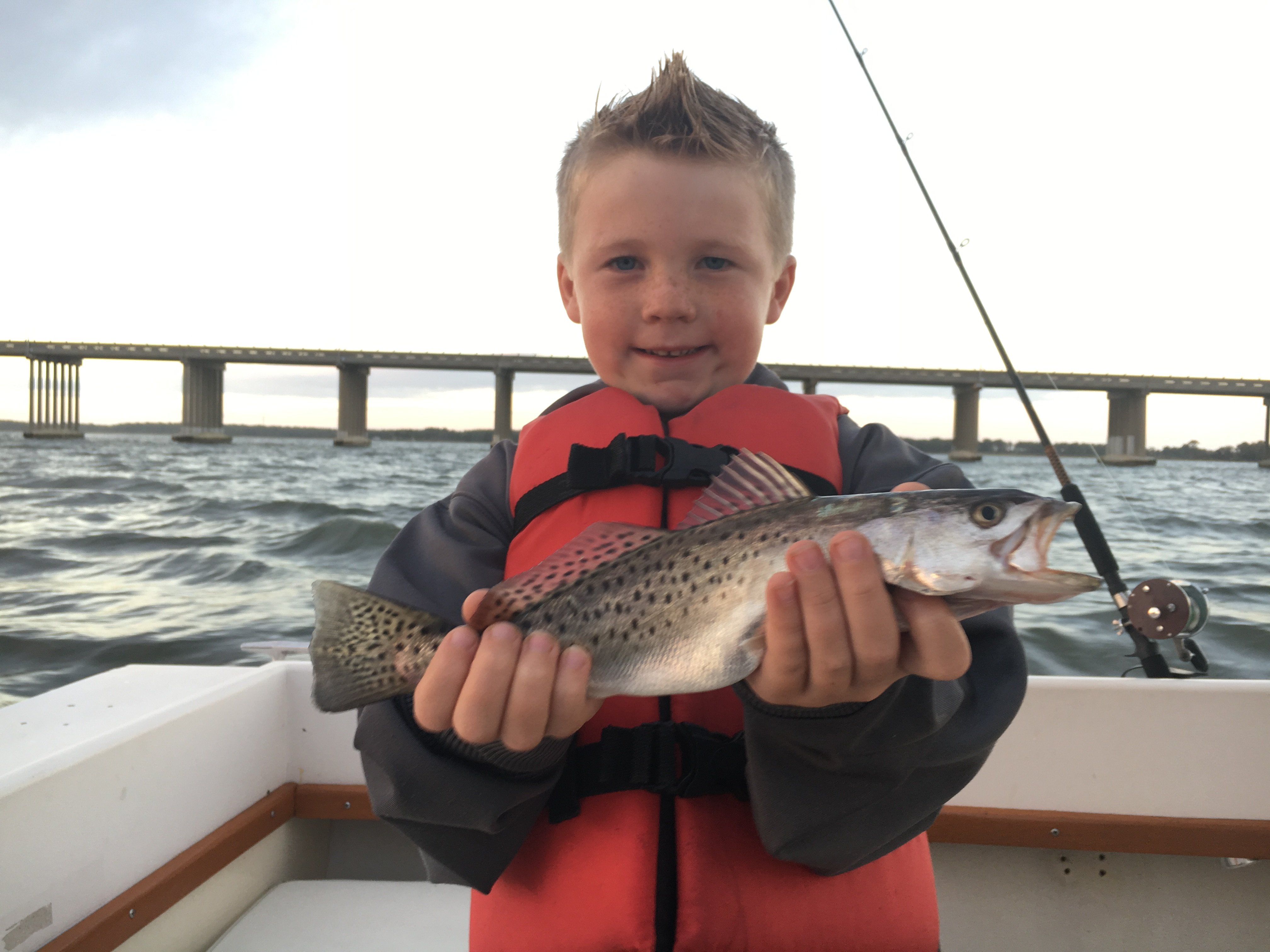 John Wooldridge was a proud dad when he watched his son Grayson cast and catch his first ever speckled trout while fishing the north bay by the route 90 bridge.