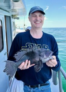 Captain Monty Hawkins of the Morning Star is hoping that sea bass fishing picks up soon, but he was able to get plenty of keepers for his folks today.