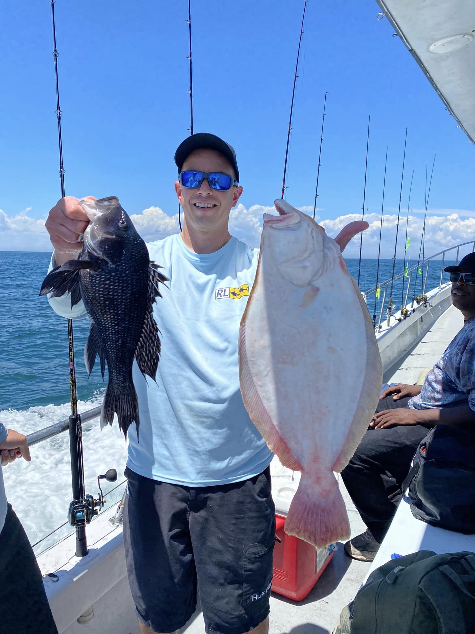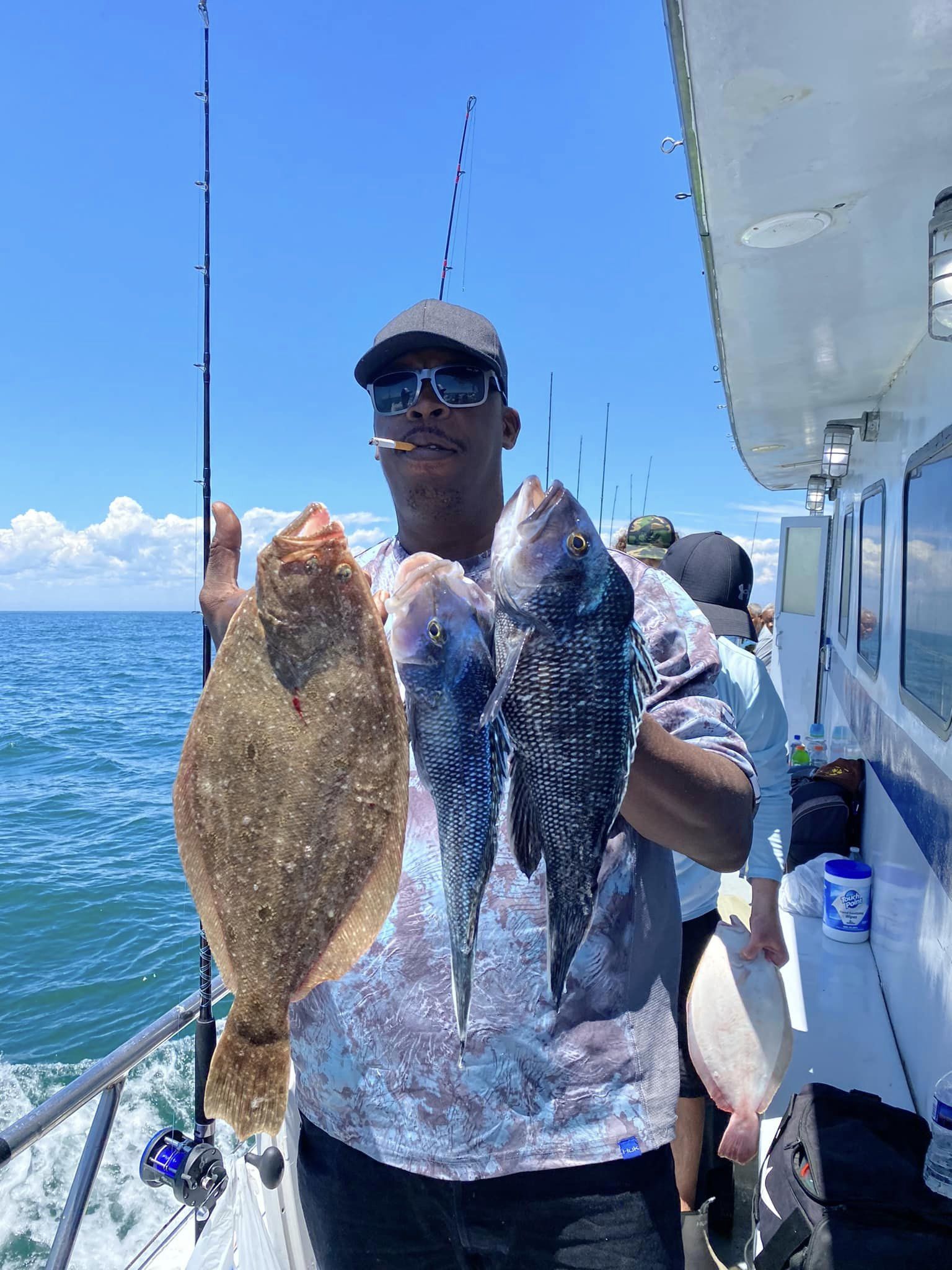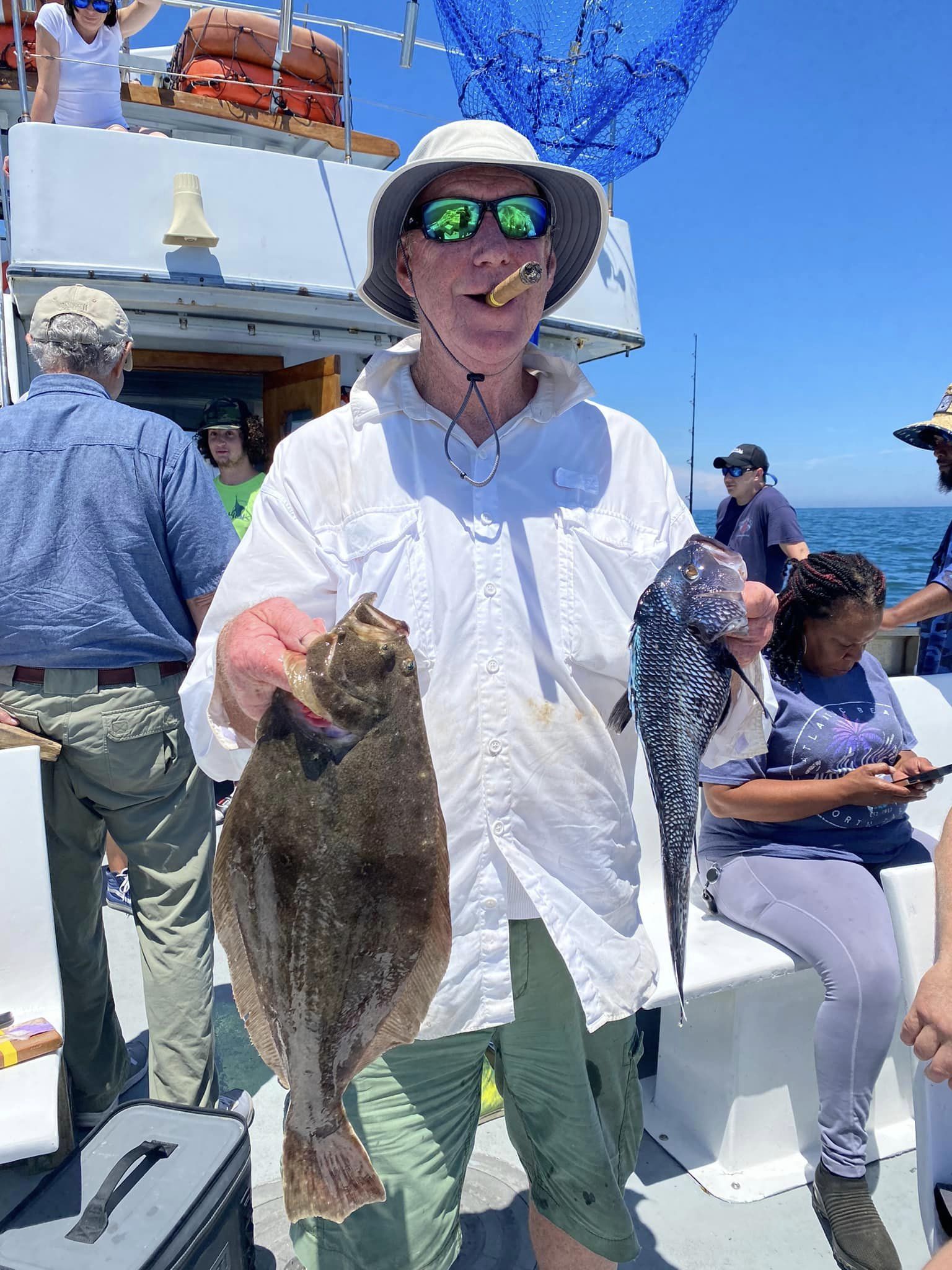Captain Chris Mizurak of the Angler reported a mixed bag of fish today with some nice flounder catches and plenty of sea bass around the rail.