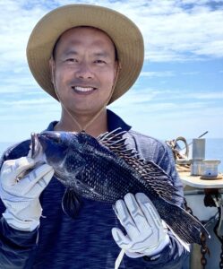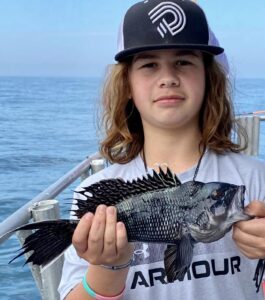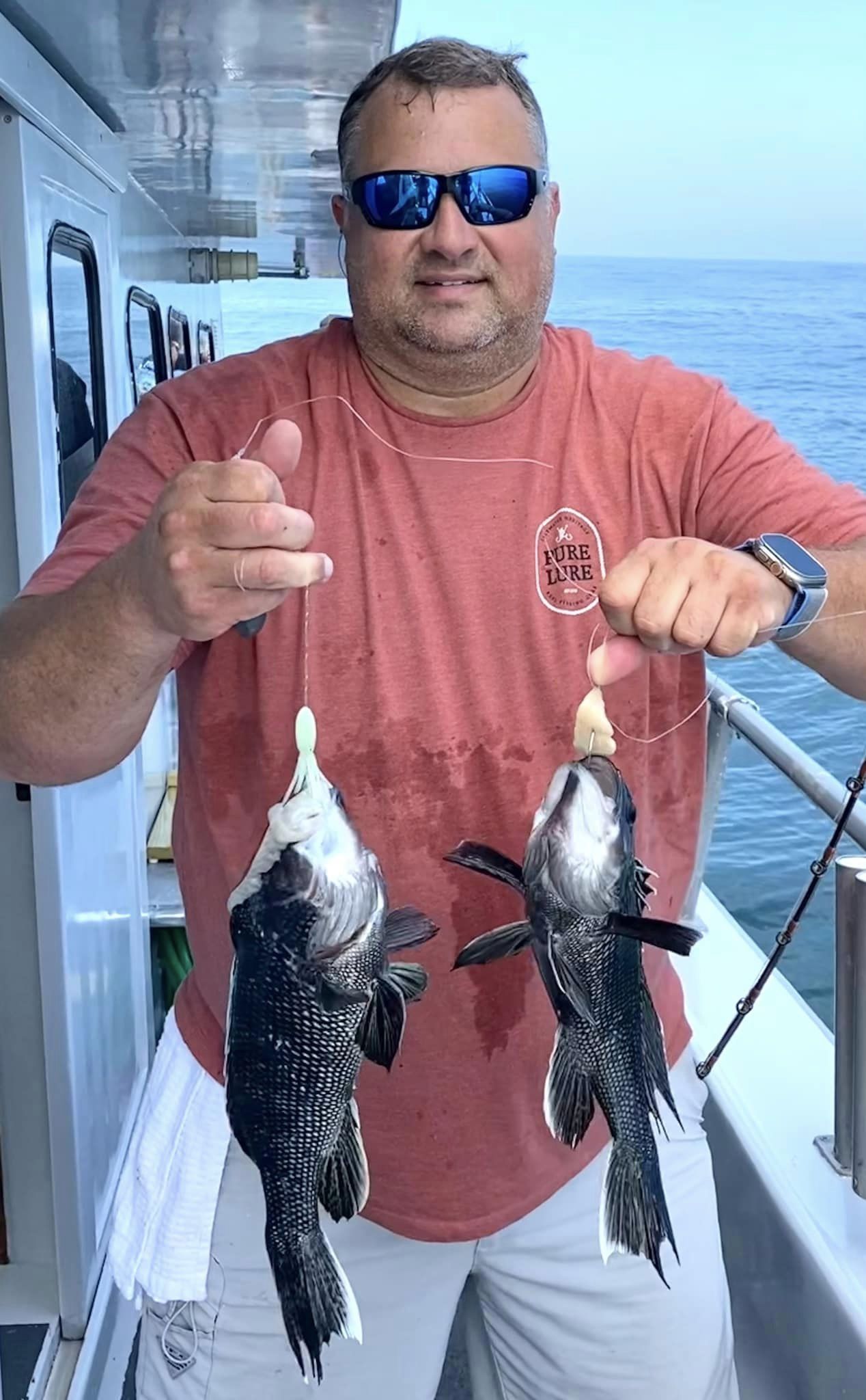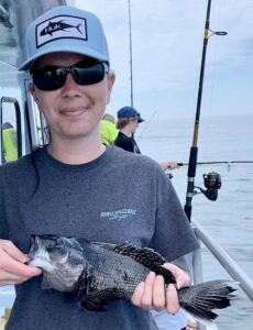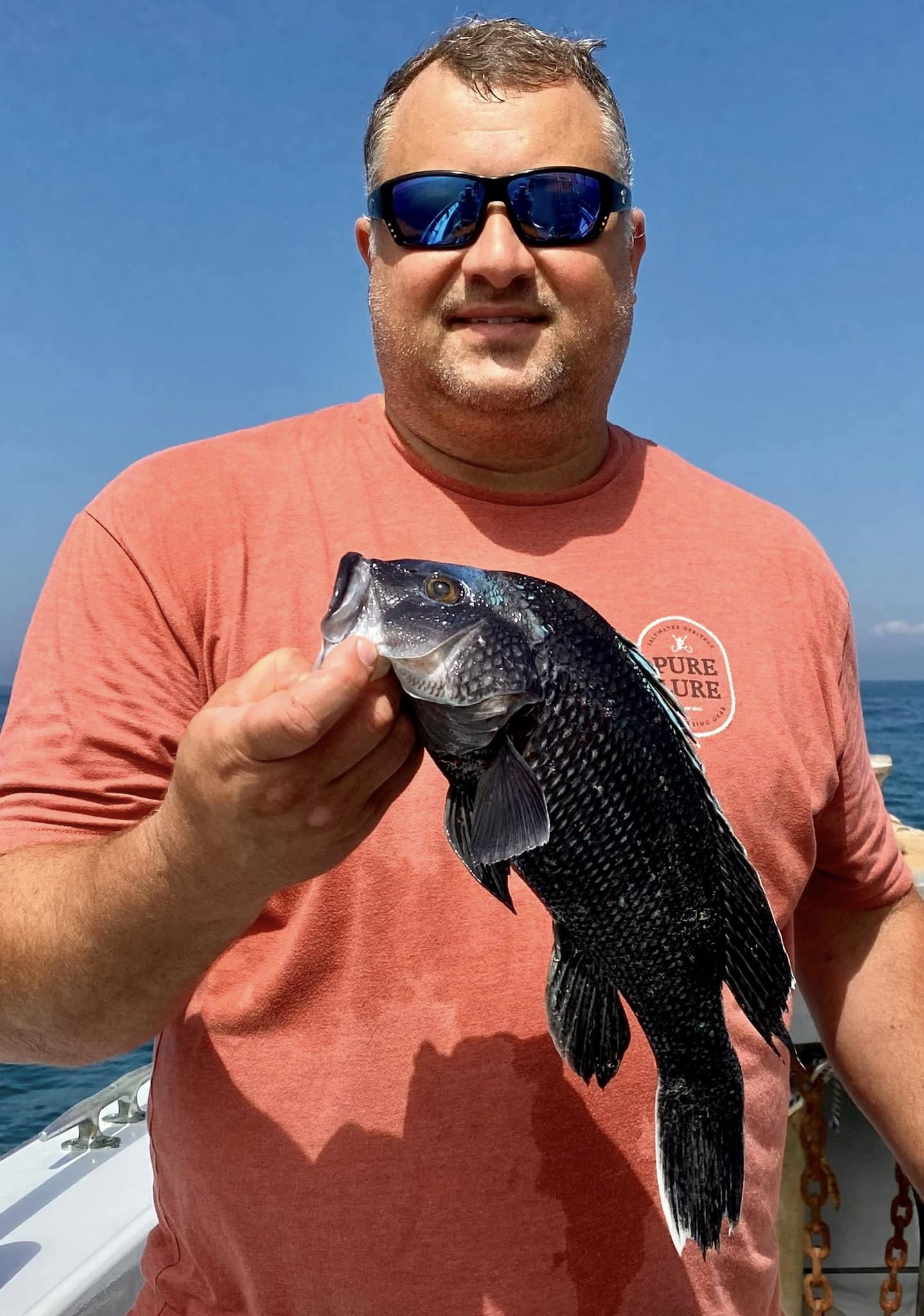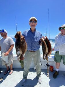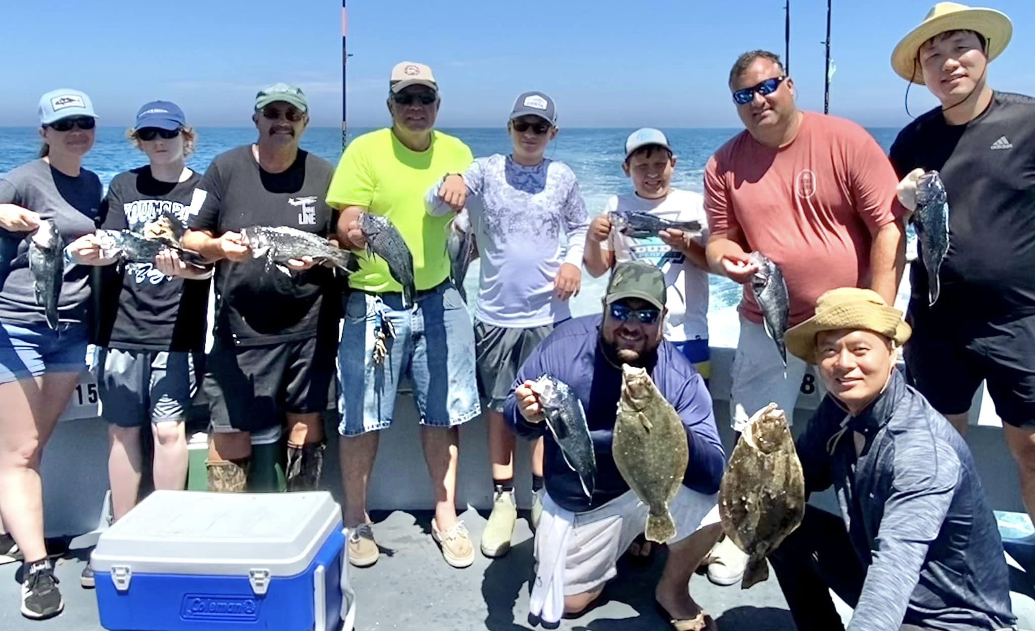 Captain Chris Mizurak of the Angler reported a mixed bag of fish today with some nice flounder catches and plenty of sea bass around the rail.