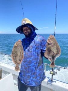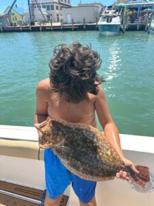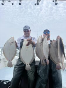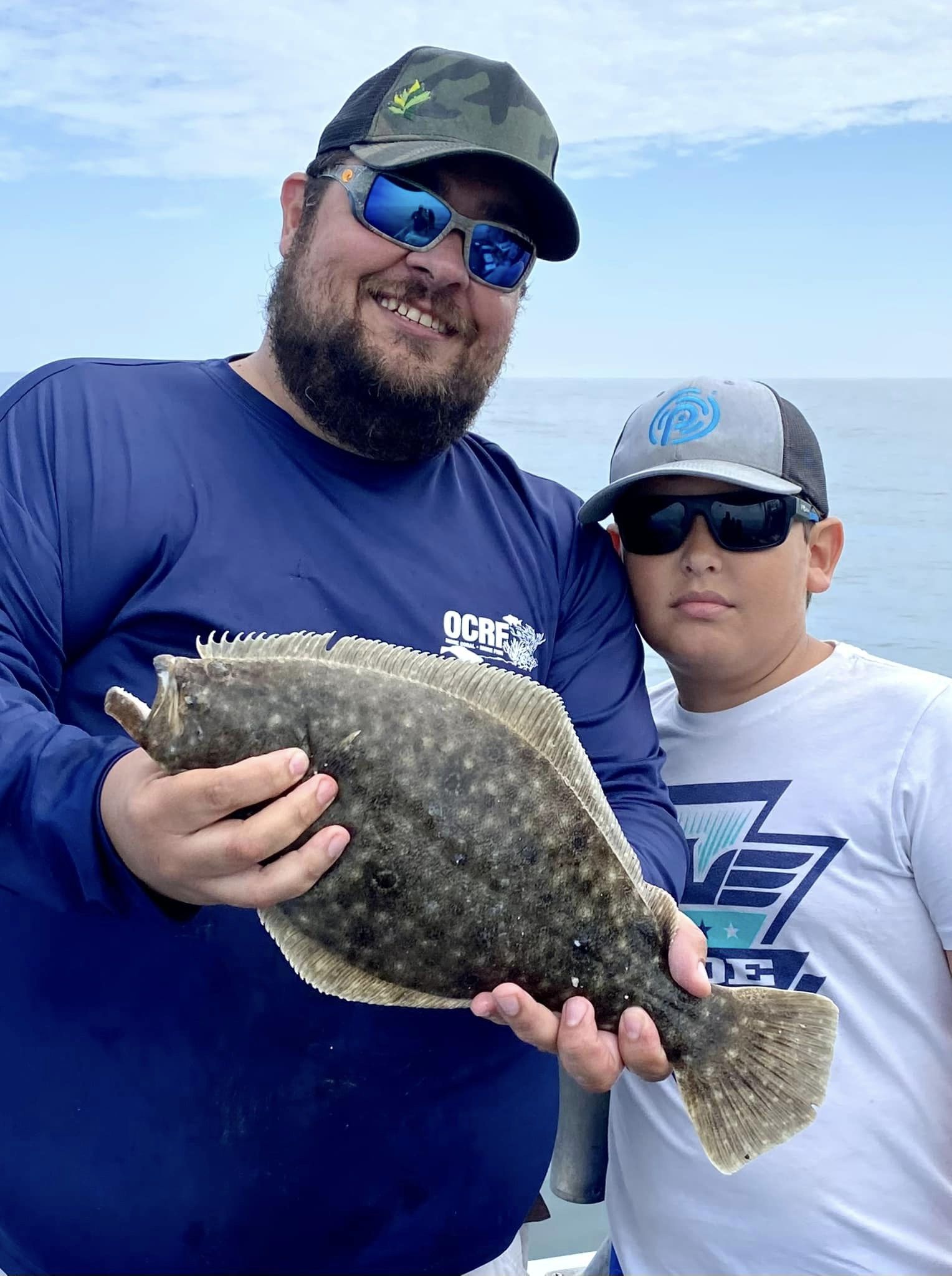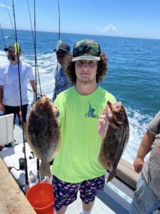 Flounder fishing over ocean structure was good for Blake Gunther and Derek Yobst today. The guys had a two man limit of flatties with fish over 2o”.