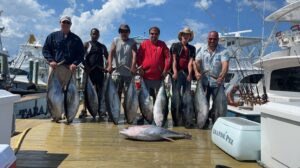 Captain Chris Watkowski and mates Chase Porter and Ayrton Pryor had a good day of tuna fishing in the Poorman’s with 5 yellowfin for the fish box.