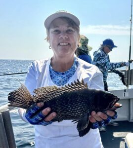 Sea bass bit better later. Anne took the pool money today. Pushed well into overtime in hopes clients might have company for dinner. Some did, too.. Folks can go on and on about camaraderie’s importance to a day of fishing – and it is. But in my business a day that doesn’t end doing dishes wasn’t much of a day at all.