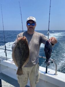 Captain Dave Caffrey of On the Run had a nice afternoon with a couple of keeper flounder for his anglers.