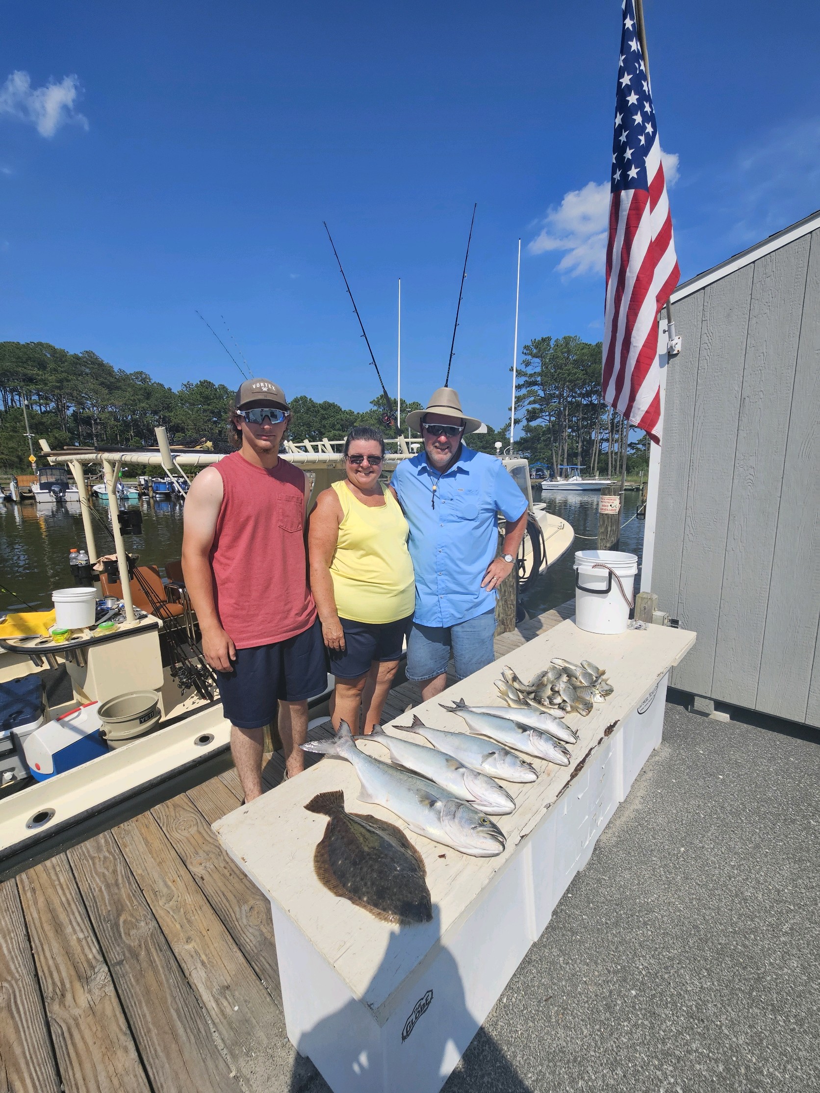 Captain Jason Mumford of Lucky Break had a good afternoon for his folks putting them on a keeper flounder, some bluefish and a pile of spot.